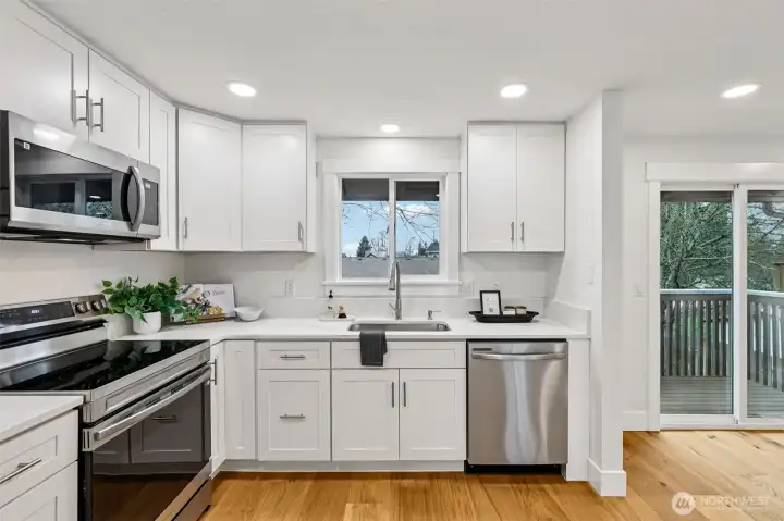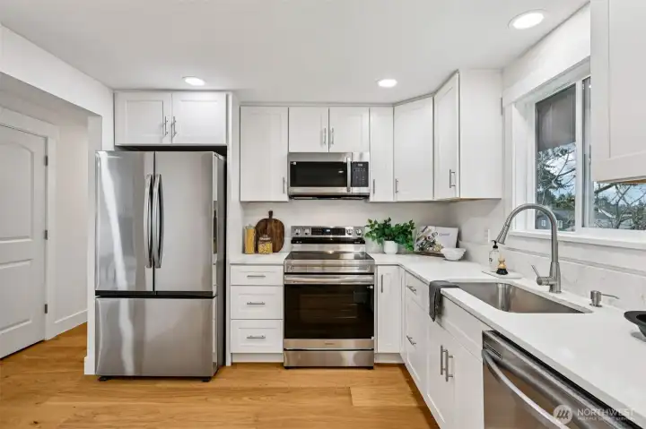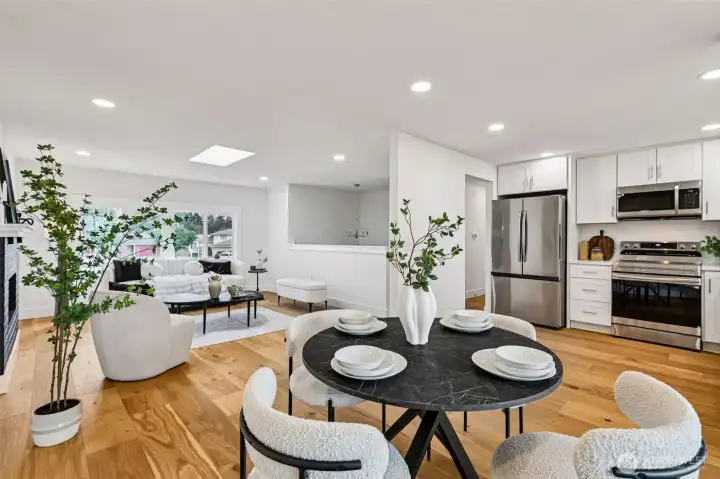 Fabulous, fully refreshed, and move-in ready, this 3-bedroom, 1.75-bath home delivers space, style, and serious value. The bright, open-concept layout features a spacious kitchen that flows effortlessly into the dining and living areas, plus a huge family room perfect for entertaining, relaxing, or everyday life. Nearly everything is new including the roof, double-pane windows, cabinets, engineered wood flooring throughout, quartz countertops, appliances, washer and dryer, and fresh interior and exterior paint—giving the home a clean, modern feel from top to bottom. Both bathrooms are beautifully updated with new tile, and the full bath includes elegant granite finishes. Outside, enjoy a large fenced lot, new front and backyard landscaping, and a 2-car garage, all in a convenient location close to shopping and freeways. Stylish, functional, and priced to move—this is one you don’t want to miss.