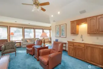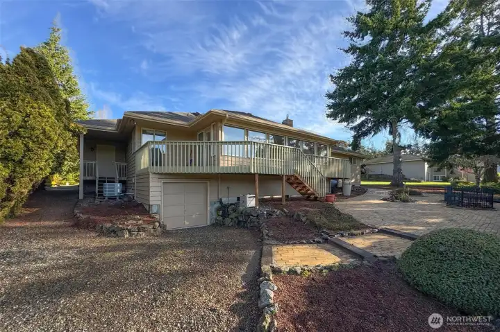 Exceptionally maintained, one level, golf course view home, overlooking the 13th fairway and tee box, and surrounded by a beautifully landscaped low maintenance yard with circular driveway. This one owner home has never before been on the market. Upon entry you are greeted by an expansive wall of windows overlooking the course, designed to soak in that year round south facing sun! This home has 3 bedrooms, 2 baths, a separate craft/hobby room, and is classically designed with excellent attention to detail. Coved ceilings and a propane fireplace, all wood window casings, multiple skylights, a wet bar area, tons of storage space, a large wraparound deck and brick patio, and even the perfect golf cart garage on the lower level ready to roll out onto the links. Sunland offers a plethora of amenities, including Golf, a clubhouse, pool and tennis/pickle ball courts, walking paths, even a community beach with cabana. This home is located in an ideal position for both privacy and community connection. Across from Graysmarsh farms near the eastern end of Woodcock Road adjacent to a vacant lot owned by the neighbor, this home is perfectly suited for enjoying all that sunny Sequim has to offer.