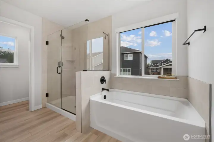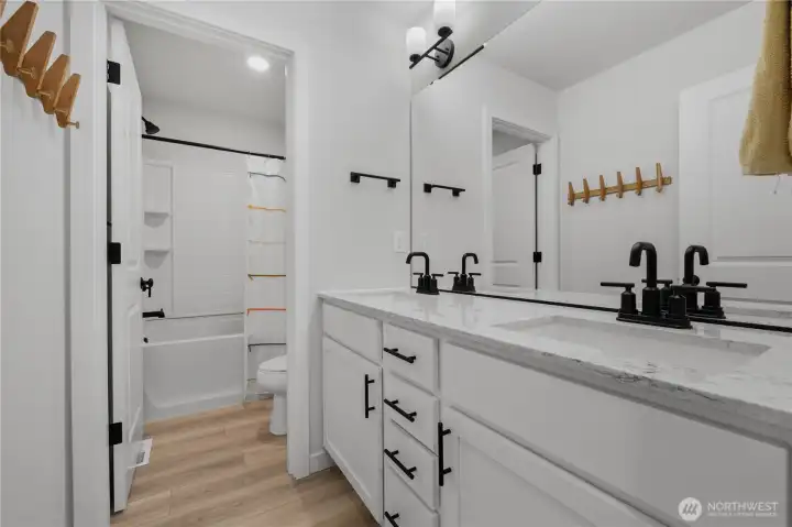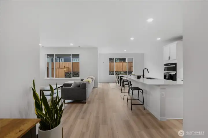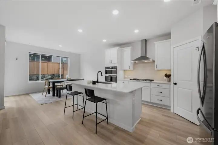 Discover the perfect blend of modern luxury and Pacific Northwest charm in the highly sought-after McCormick community of Port Orchard, WA. This stunning 2024-built 5-bedroom, 2.5-bath home offers approximately 2,587 sq ft of thoughtfully designed living space, featuring soaring 9-foot ceilings, an inviting great room with a cozy shiplap-accented gas fireplace, and a gourmet island kitchen boasting quartz countertops, stainless steel appliances (including a 5-burner gas cooktop), and elegant 42" soft-close cabinetry. The luxurious primary suite includes a spa-like ensuite with dual sinks, soaking tub, tile shower, and generous walk-in closet, while a bonus room and extra bedroom on the main level provide flexible space for an office, guest suite, or play area. Step outside to a private, fully fenced backyard with a spacious covered patio—ideal for year-round entertaining, relaxing on lush grass, or enjoying your serene retreat. Nestled in vibrant McCormick, enjoy miles of scenic trails, nearby parks, and the renowned McCormick Woods Golf Course just moments away. This move-in-ready gem delivers effortless comfort in one of Port Orchard’s most desirable neighborhoods. Your dream Pacific Northwest retreat awaits!