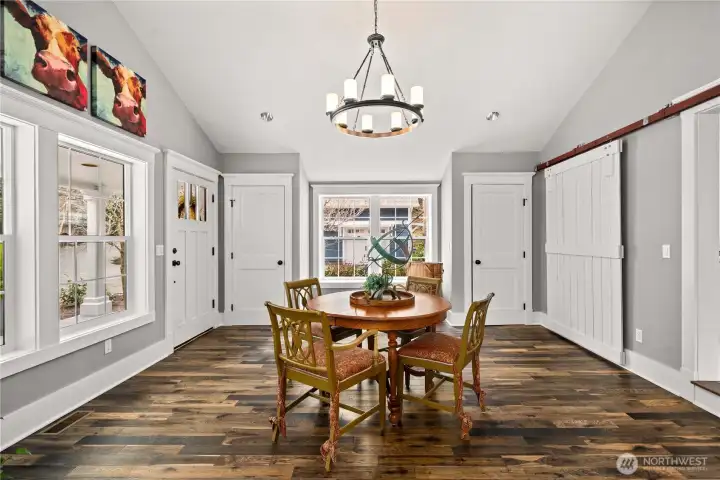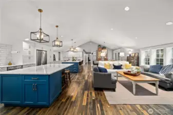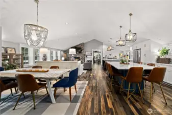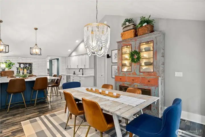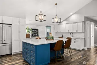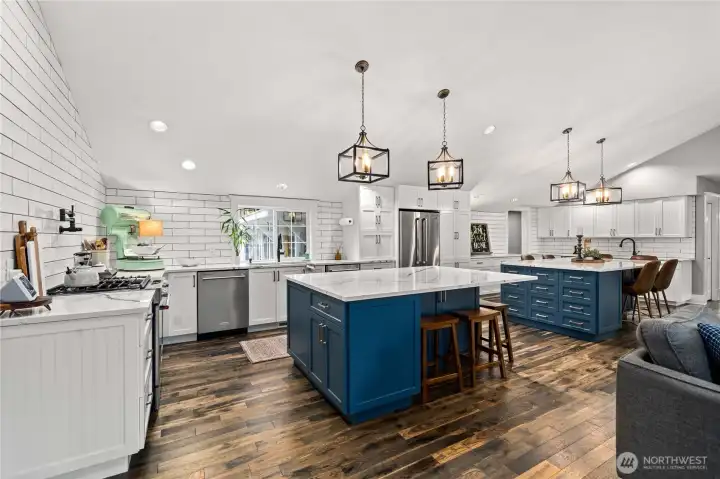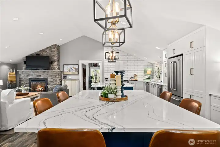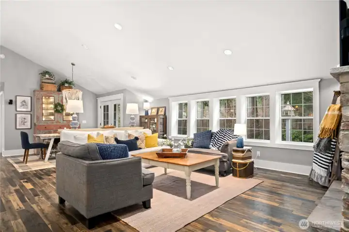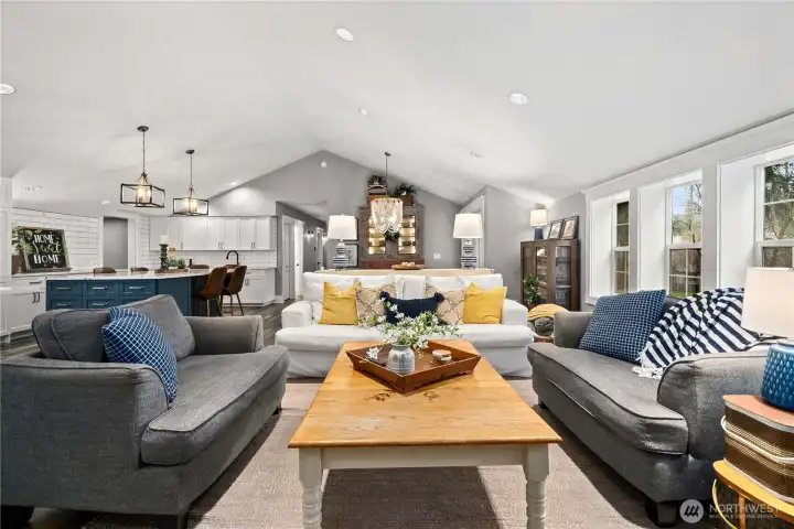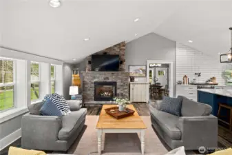 Fully remodeled modern farmhouse living in Hobart on a private, park-like 1.17 acres—with the rare bonus of a one-story home rebuilt to the foundation for a true “like-new” feel and thoughtful, high-end finishes throughout. A detached garage with bonus living space adds incredible flexibility for guests, work-from-home, hobbies, or multigenerational needs. Step inside through a fully enclosed, windowed sunroom entry—a bright, inviting space that’s ideal for morning coffee, plants, or a cozy all-seasons landing zone. And for commuters, you’ll love the quick access to Hwy 18 for an easy connection to wherever the day takes you.Vaulted ceilings and walls of windows fill the main living area with natural light, anchored by a high-performance propane fireplace for crisp Northwest nights. The showpiece kitchen is built for real entertaining: double islands, custom cabinetry and built-ins, Cambria quartz, a pantry nook, a streamlined hidden-appliance look, and the dream upgrade—two dishwashers.The primary suite lives like a retreat with a spa-style shower featuring double heads and body jets, plus a smart, functional layout. Enjoy year-round comfort with an all-electric heat pump with A/C, plus a generator setup for extra peace of mind.Outside is where it really shines: cottage-garden landscaping with micro-clover and drip irrigation, patio and hardscape areas for gatherings, and a lighted basketball court.