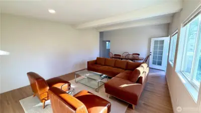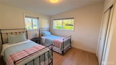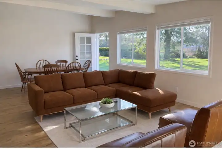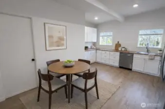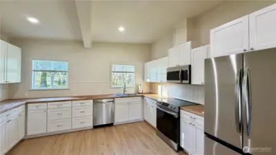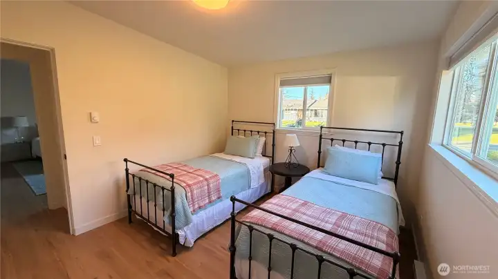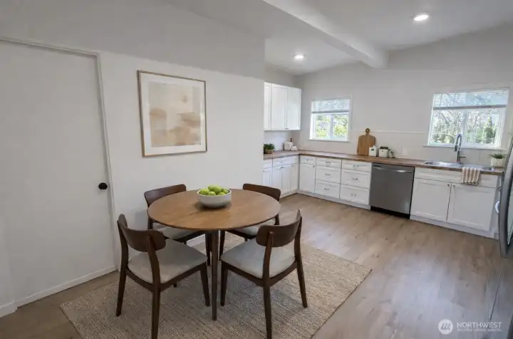 Welcome to this beautifully updated mid-century modern home in the heart of Forks! Where timeless charm meets thoughtful updates. Just minutes from town, shops and the Hospital! This inviting 3-bedroom, 1.5-bath residence offers the perfect balance of comfort, character, and convenience. Step inside to a partially open floor plan, ductless heating and cooling to keep you comfortable all year long. Beautiful luxury vinyl plank flooring that flows seamlessly throughout the main living spaces and bedrooms, creating a warm and cohesive feel. The bright, spacious kitchen is a true standout, featuring new cabinetry, generous butcher block counter space, and plenty of room to gather. A stylish heated checkered tile pattern floor in both bathrooms adds to the home’s mid-century roots while maintaining a fresh, modern aesthetic. The primary bedroom includes a private en suite half bath, adding everyday comfort and functionality. Outside, the rare double lot truly sets this property apart. The fully fenced yard provides exceptional space to garden, entertain, or simply unwind in privacy. Mature fruit trees including apple, cherry and pear, add beauty and seasonal abundance, while the expansive mature grounds offer room for play, pets, or future possibilities. Making this your own backyard retreat! The attached 2-car garage adds convenience, storage, and flexibility. Modern updates, vintage character, and a prime in-town location—this Forks gem is ready to welcome you home.