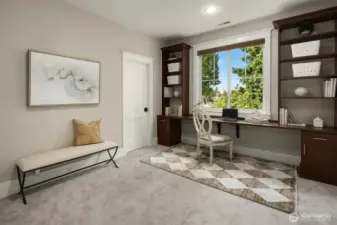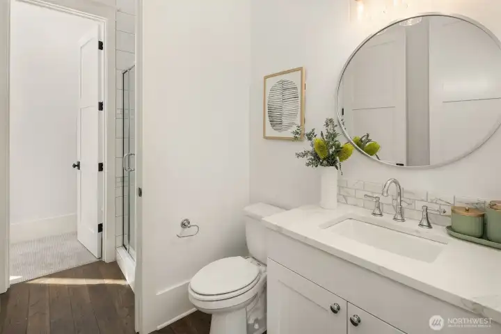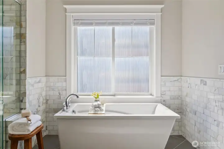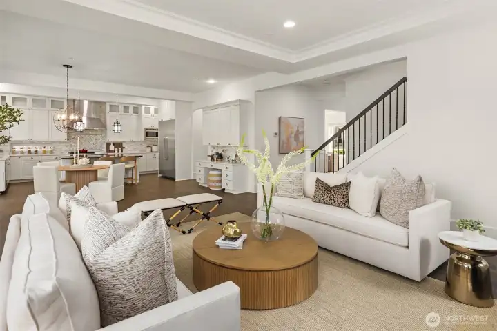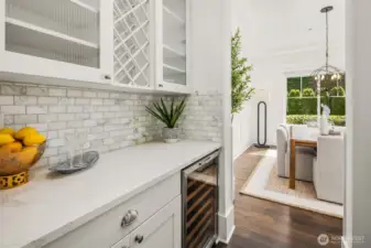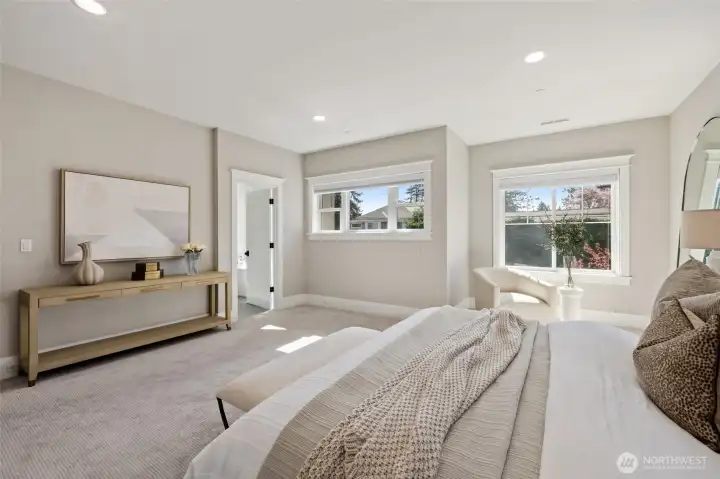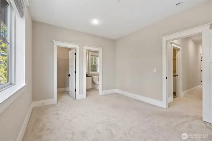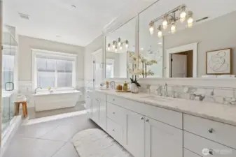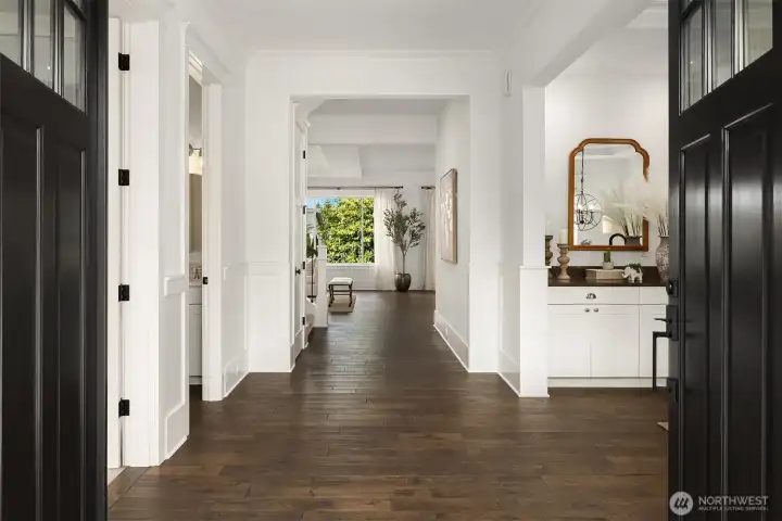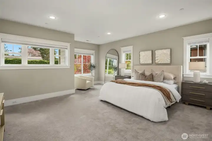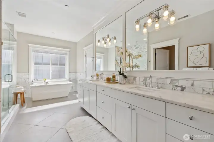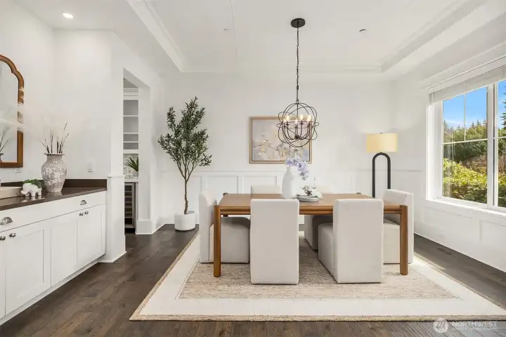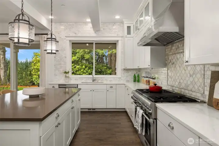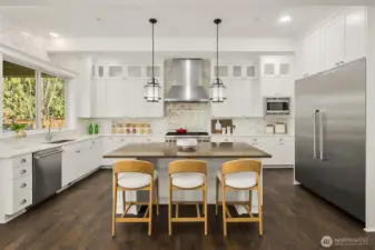 Tucked among private, multi-million-dollar homes, this exceptional resale by award-winning builder American Classic Homes presents nearly 5,000 sq. ft. of thoughtfully curated living space. Exquisite craftsmanship is evident throughout, with tall doors, substantial custom millwork, and grand-scale baseboards that create a polished transition from rich hardwood floors to crisp white walls. Embodying quiet luxury, this kitchen showcases a full-wall marble backsplash with an artisan-inlaid focal point and elegant floor-to-ceiling cabinetry. The professional-grade Thermador appliance package anchors the room, complemented by a walk-in pantry offering outstanding storage and organization. The home features a desirable main-level suite—ideal for guests or multi-generational living. With several bedrooms and versatile spaces, the floor plan easily supports a large household, dual home offices, or evolving living needs, enhanced by countless custom built-ins that add both charm and functionality. A true lifestyle chameleon, the oversized bonus room perfectly adapts to your needs—be it a cozy media den, playroom, yoga studio, or a welcoming spot for overnight guests. A tranquil sanctuary, the backyard features a manicured lawn framed by lush privacy hedging. The covered paver patio serves as a fluid extension of the home, perfect for year-round outdoor living. Enjoy the Eastside lifestyle with top Bellevue schools, just steps from QFC and minutes from SR-520.