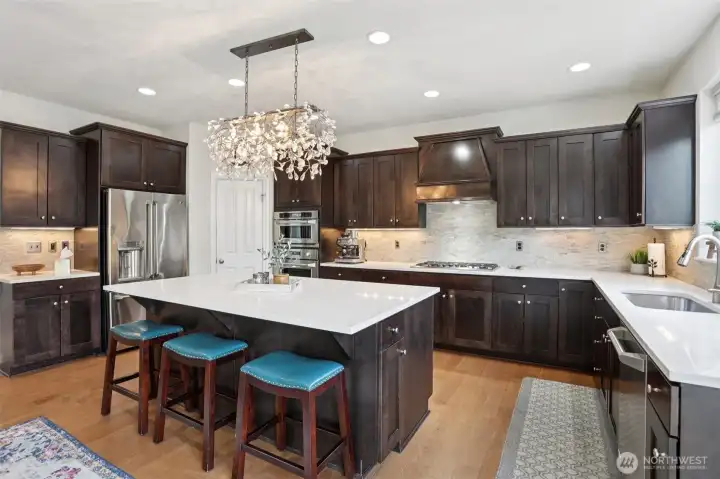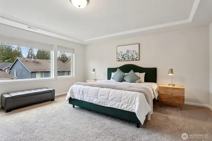 Welcome to this stunning Renton Highlands home in the coveted Liberty Gardens community. Tucked away on a quiet no-through street, this luxurious home offers the perfect blend of privacy, comfort, and community. Located in the highly sought-after Issaquah School District and just moments from a wooded walking trail and neighborhood park, the setting is as exceptional as the home itself. Step inside to soaring ceilings and abundant natural light filling the expansive living spaces. The open-concept design is anchored by a chef’s kitchen with new countertops, updated main-level flooring and stairs, and thoughtful finishes throughout, including tile and countertops in the laundry room and bath, plus A/C for year-round comfort. A main-level den provides flexible space for a home office or guests. With five spacious bedrooms, including a generous en-suite primary retreat, this home is ideal for generational living. The daylight basement features a private bedroom and bath—perfect for extended living or guests. Situated on a desirable corner lot, the fully fenced backyard is designed for entertaining and relaxation, featuring a large deck overlooking the park, covered patio with storage, and fruit and magnolia trees. Light-filled, beautifully updated, and thoughtfully designed—this is the one you’ve been waiting for.
