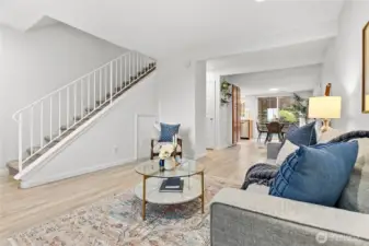 Enjoy convenient, low maintenance living, Bellingham Bay view, and amazing sunsets from this 2 Bedroom 2.5 Bathroom condo in Barkley. Lives like a townhome with no shared walls! Fresh paint, open layout, & abundant natural light. Main floor features living room, guest bath, & kitchen with dining area. Slider opens to a fenced courtyard backing to Northridge Park, very private and quiet. Upstairs: primary w/ ensuite & walk-in closet; second Bedroom with bay views & private ¾ bath. Deep 1-car garage w/ storage. Water, sewer, and lawn service included in the monthly HOA fee. Easy trail access to the right of the condo. Prime location near Barkley Village, Lake Whatcom & trails.