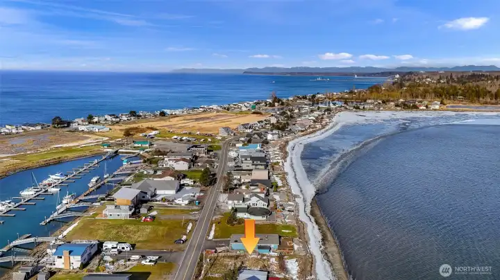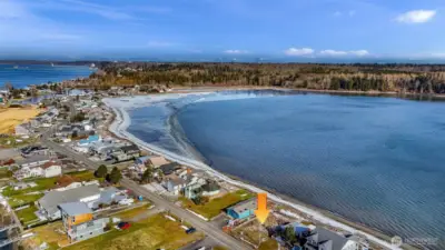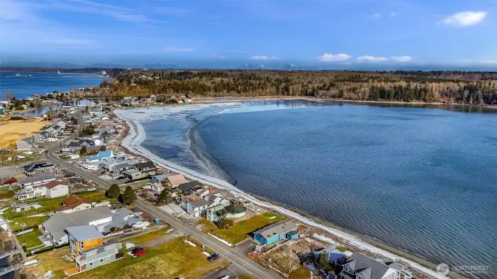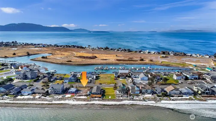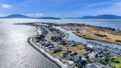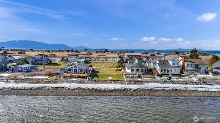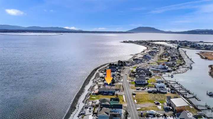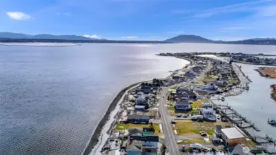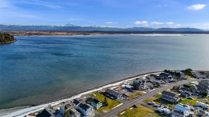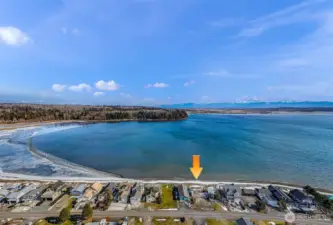 Waterfront lot with views of the bay, sound, islands, and Mt. Baker. 50 feet of waterfront inside on a sheltered bay. If you're a boater the marina is across the street. Amenities include a golf course, swimming pool, clubhouse, and marina. Water, sewer, and electricity are in the street. This waterfront community is a short 15 minute drive to the airport and another 5 minutes to major shopping and health care facilities.