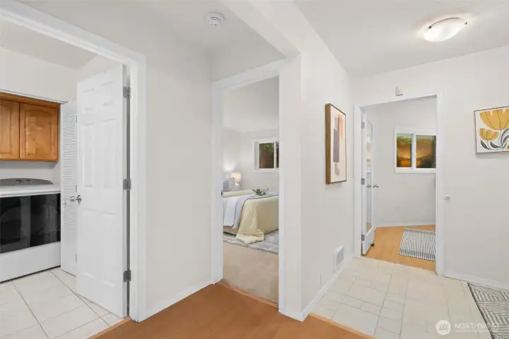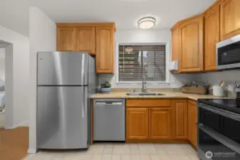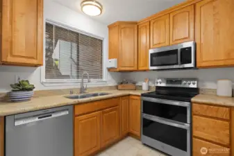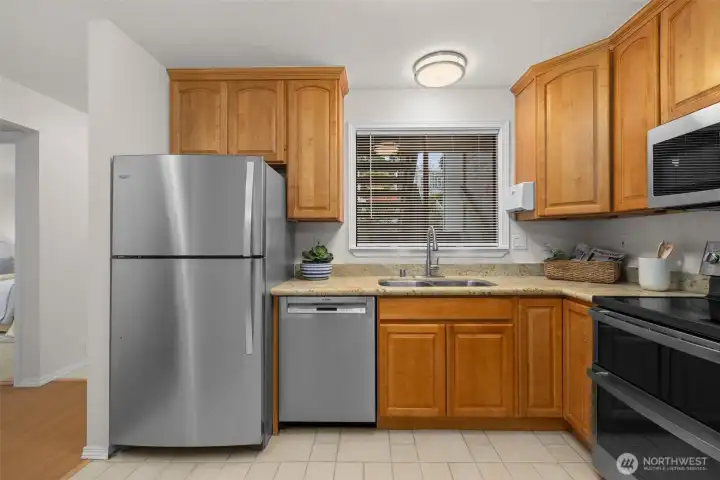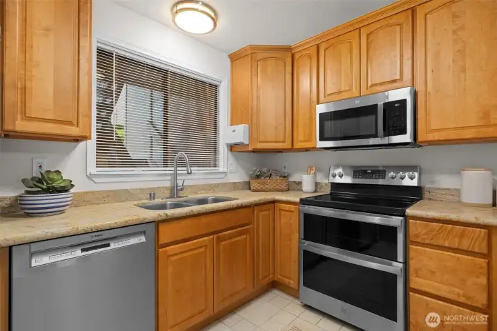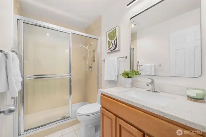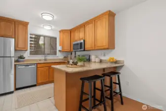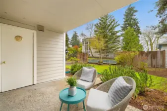 Beautifully remodeled and exceptionally spacious ground-level condo in the heart of Factoria, offering comfort, convenience, and an easy Eastside lifestyle. This bright 2-bedroom + den home features an updated kitchen with modern finishes and renovated bathrooms, creating a fresh, move-in ready feel. The open and functional layout includes a generous living area with a cozy fireplace, wet bar, small fridge and large windows that bring in abundant natural light. A slider door from the living room opens to a private garden patio—perfect for relaxing, entertaining or enjoying seamless indoor-outdoor living. The primary suite offers a walk-in closet and peaceful garden outlook. A den provides flexible space for a home office/study nook. Enjoy resort-style community amenities with the pool just steps away. Detached 1-car garage and additional storage room in your back patio for added functionality. Plenty of guest parking. Ideally located within award-winning schools including Newport High School right across the street. Minutes to Factoria Mall, bus line, dining, parks, and the newly opened T&T Supermarket, this condo is walkers paradise! Easy access to I-90 and I-405 provides quick commutes to Bellevue, Seattle, and major tech employers. A rare opportunity to own a spacious, updated home in one of Bellevue’s most convenient locations. Pre-inspected and ready for move in!