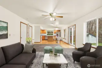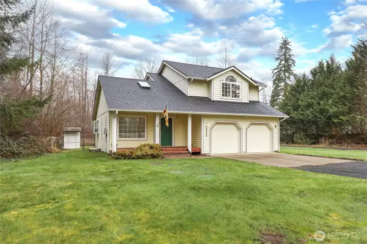 Discover this beautiful 3bd/2.5 bath Olympia home nestled on 9.49 peaceful acres, welcoming you with soaring vaulted ceilings and abundant natural light, featuring a spacious living room, an inviting kitchen with dining area and charming garden window, a cozy family room with propane fireplace, plus a convenient laundry room and half bath on the main level, while upstairs offers a generous primary suite, a full bath with skylights and roomy closet, along with two additional bedrooms and another full bath; recent updates include the roof and septic system, and year-round comfort is ensured with an electric furnace and heat pump for warmth in winter and cool relief in summer, all complemented by a 2-car garage with roof racks, and a huge partially fenced backyard with a large entertaining patio, raised garden beds, well pump house, and endless acres of stunning Northwest scenery, all just minutes from schools, shopping, entertainment, I-5, and JBLM.