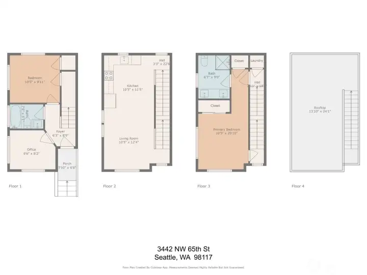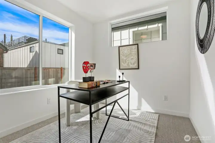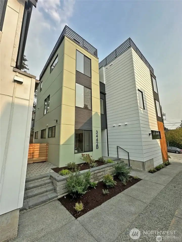 Best price for the best views! Well worth the visit to see the views. Location! Location! Location! Very unique 6 unit project in one of North Seattle's most sought after neighborhoods; Sunset Hill. This unit has West facing windows that provide an abundance of natural light. 1st floor has a bedroom, den/office & a full bath. The 2nd floor has an open floor plan w/ high ceilings & large picture windows. The kitchen is well appointed w/ stainless steel appliances. 3rd floor has a spacious primary bedroom & 3/4 bath. The primary bedroom has views of the Sound/Olympic Mountains. This home has a large rooftop deck w/ stunning views of Rainier/Sound/Olympics. Fenced yard. 1 assigned off-street parking spot. Near Picolinos, Ray’s, Shilshole, Ballard Locks, Elks, Golden Garden, Sunset Park & much more.