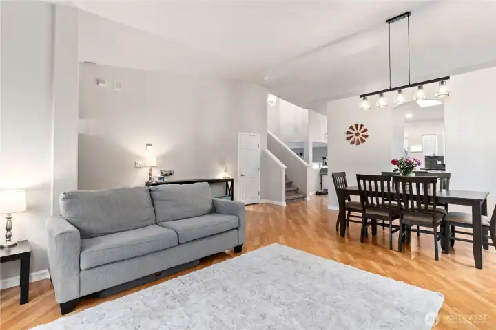 Welcome Home to this beautifully updated 4-bedroom, 2.5-bath home situated on a large, private, fully fenced lot mere MINUTES from JBLM and downtown Yelm! This thoughtfully designed home offers an open-concept floor plan with vaulted ceilings, expansive windows, and abundant natural light throughout. The main level features a bedroom, bathroom, laundry room, two separate living areas, a formal dining space, and an inviting eat-in kitchen complete with granite countertops, stainless steel appliances, a pantry, and generous cabinetry for AMPLE storage! The primary suite offers a luxurious five-piece bath and a massive walk-in closet, accompanied by two additional well-sized bedrooms. Home includes a PROFESSIONALLY installed solar energy system by Freedom Forever, featuring high-efficiency panels from JinkoSolar and REC Group! Enjoy the benefits of renewable energy and MASSIVE utility savings, often leaving no bill in summer altogether. In addition to solar, experience year-round comfort with a gas fireplace and an energy-efficient heat pump with A/C! Savings upon savings. Enjoy the upcoming summer season and warm sunsets with unlimited BBQs on your expansive deck with mature landscaping throughout. Conveniently located within walking distance to schools, parks, local restaurants and shopping! This truly is the one! Go see it today!