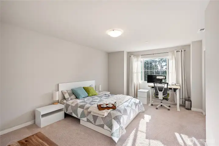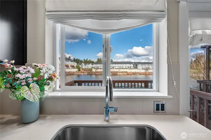 Welcome to The Ponds — a peaceful, beautifully maintained community where modern comfort meets everyday convenience. This immaculate, like-new residence offers 2 bedrooms, 2.5 baths, and 1,413 square feet of thoughtfully designed living space, plus a private deck with sweeping water view! Step inside to a bright, open main floor built for both daily living and effortless entertaining. The chef’s kitchen truly shines with stainless steel appliances, a generous pantry, premium quartz countertops, and an oversized island with seating — the perfect hub for gathering. Expansive windows flood the living area with natural light, while year-round central A/C ensures comfort in every season. Upstairs, both spacious bedrooms feature their own full bathrooms, offering privacy and flexibility ideal for guests, roommates, or a home office setup. An energy-efficient washer and dryer are conveniently located on the same level. The oversized 2-car garage provides exceptional storage and workspace potential, plus an additional patio area for outdoor enjoyment. Enjoy immediate access to nearby nature trails and parks, while remaining minutes from vibrant town centers, major commuter routes, and transit options. Not a condo. No rental cap.