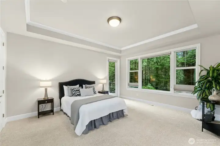 Rare opportunity to live in Forest Village in Canterwood! This spacious yet charming 3 bedroom plus den rambler is nestled in natural surroundings with creeks and walking trails just steps from your door. Spacious great room with fireplace, formal dining room, den/office, open kitchen with island, breakfast nook and access to a large covered patio/deck, perfect for relaxing or entertaining. Large master suite with walk-in shower and double walk-in closets. Plus, all rooms feature 10' ceilings, or vaulted ceilings! Huge garage with ample space for storage or a workbench. This is a must see!