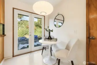 Located on a quiet street in West Seattle’s coveted Seaview neighborhood, this charming mid-century home blends quality craftsmanship with thoughtful updates and seamless indoor-outdoor living. A wood-burning fireplace anchors the living room, flowing into the dining space and kitchen with solid wood cabinetry, butcher block counters, vintage wall tile, and newer appliances. Glass french doors open to a private patio and fully fenced & landscaped backyard. Refinished oak hardwoods in most rooms, abundant natural light through newer vinyl windows, and added space & flexibility with a bright bonus room. Heated garage (gym-ready) and a dry basement with oodles of storage. Prime location with quick and easy access to The Junction (farmers market, eateries, groceries), multiple parks and Beach Drive. Don't miss this special property!