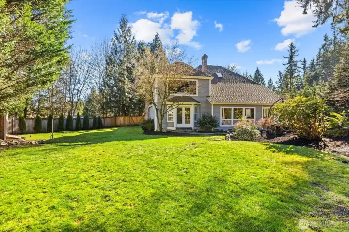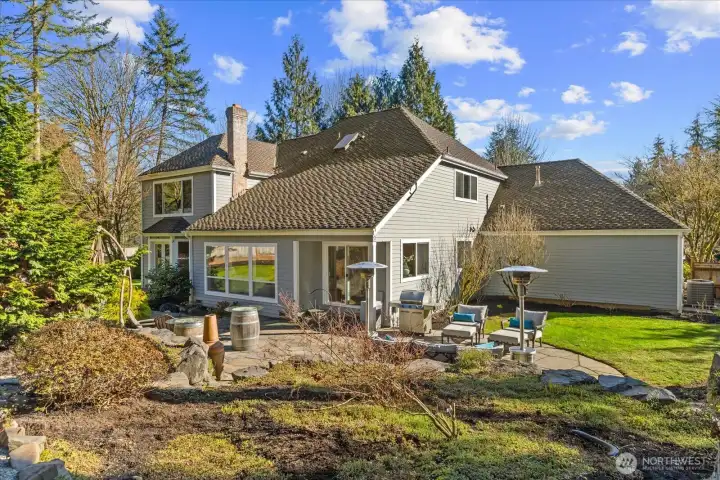 Situated on a shy ¾ acre in coveted Paradise Lake Estates, this refined residence offers an exceptional blend of privacy, space, and everyday luxury. The park-like backyard is a true showpiece, featuring a sport court, space to garden, lush lawn, wooded areas, and wiring in place for a future hot tub. Ideal for entertaining, play, or quiet outdoor enjoyment. Inside, newly refinished hardwood floors, fresh interior paint, crisp new trim, and a refreshed guest bath create a timeless, move-in-ready feel. The open-concept kitchen is the heart of the home, thoughtfully designed with striking finishes, generous storage, an oversized island, buffet bar, dual-zone 164-bottle wine refrigerator, and a plumbed U-Line ice maker. The kitchen flows seamlessly into the main living area, creating an ideal setting for both everyday living and hosting. The main-floor primary suite offers a private retreat with French doors opening to the serene backyard, an oversized walk-in closet, and an updated bath. Upstairs, enjoy a spacious bonus room with built-ins, three additional bedrooms, and abundant storage throughout. Comfort and functionality are enhanced with air conditioning and an upgraded gas water heater paired with recirculation system for faster hot water delivery. An oversized heated three-car garage provides ample room for vehicles, storage, and hobbies. Ideally located near Woodinville wineries, scenic trails, local shopping, and top-rated Northshore schools. Welcome home!