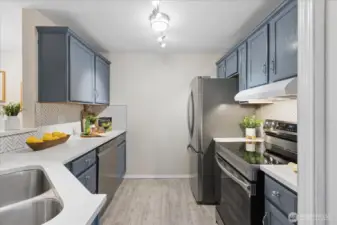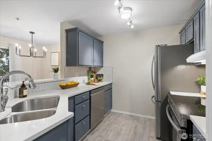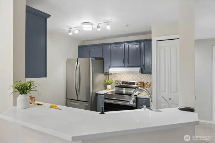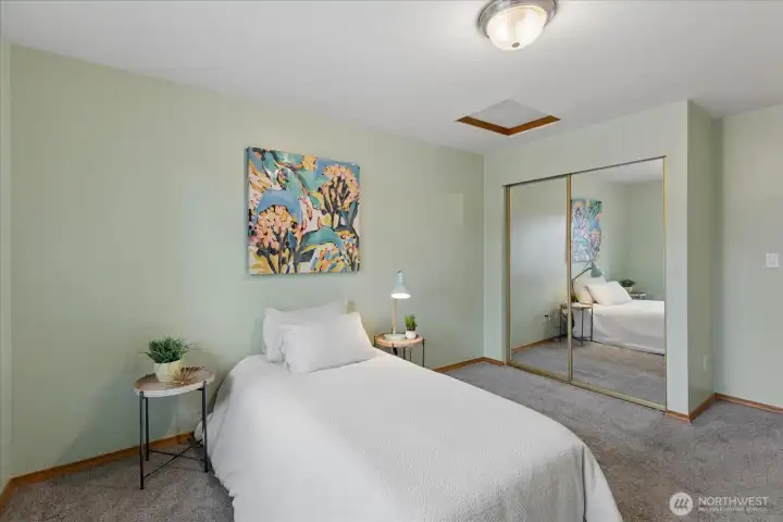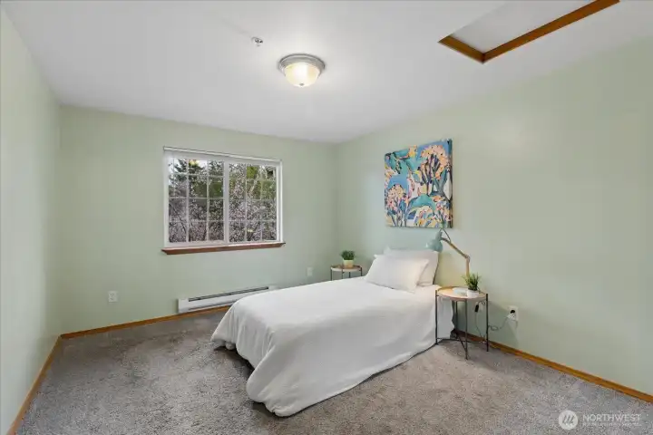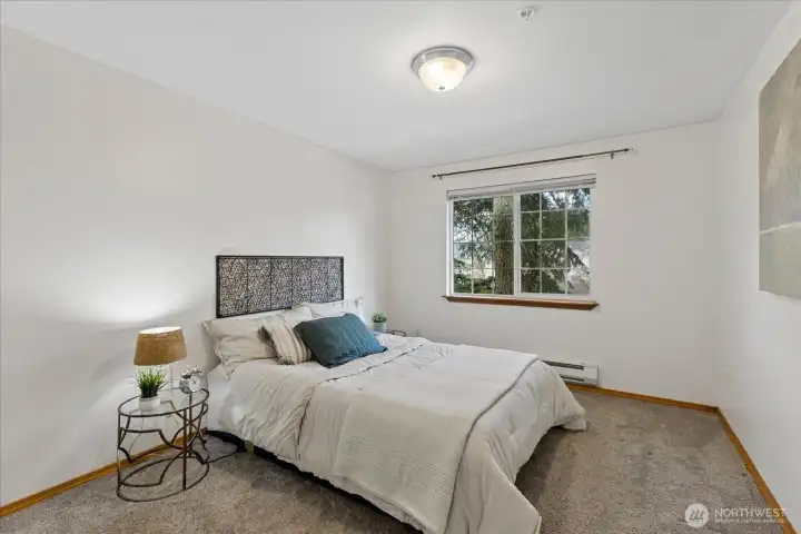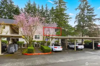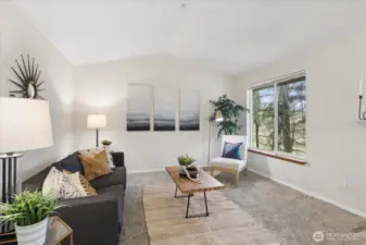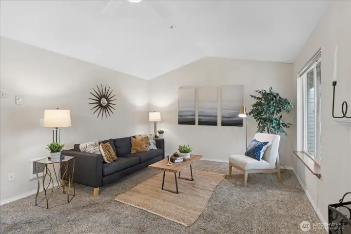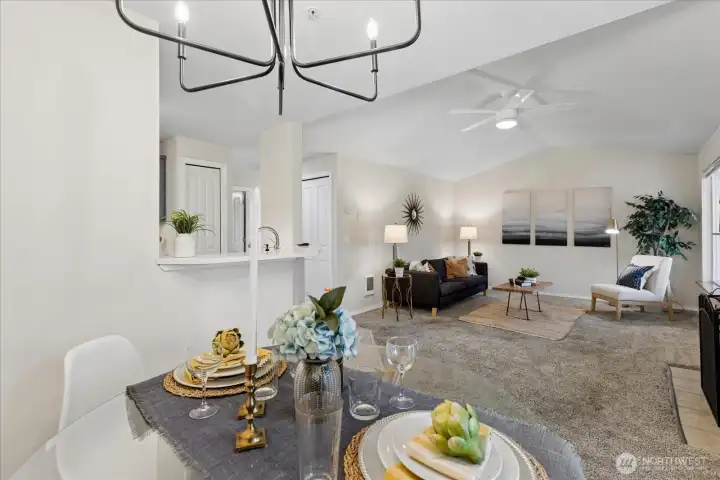 Welcome home to this beautifully updated top-floor condo! This turnkey unit features 2 Bed, 1 Bath, with vaulted ceilings and updated kitchen and bathroom with new washer and dryer in unit. The kitchen features white quartz countertops and upgraded stainless steel appliances and sink. The bathroom has been tastefully renovated with modern finishes including new shower, tile, and quartz counters. Newer carpet and laminate floors throughout. Don't miss the cozy wood burning fireplace. Pet-friendly condo community, no rental cap, w/ basketball court, playground, 2 assigned parking spots including a covered carport and visitor parking. HOA dues covers water, sewer and garbage. HOA recently replaced roof. Close to I-5, Boeing, Silver Lake, Transit Center and Park & Ride. Pre-inspected, ask agent for details.