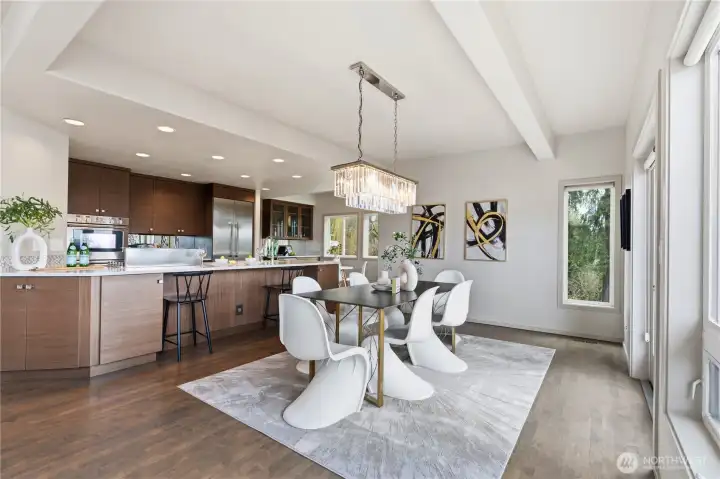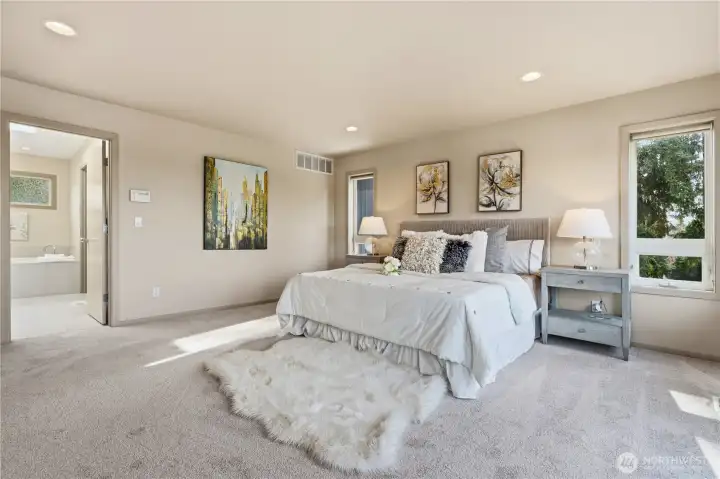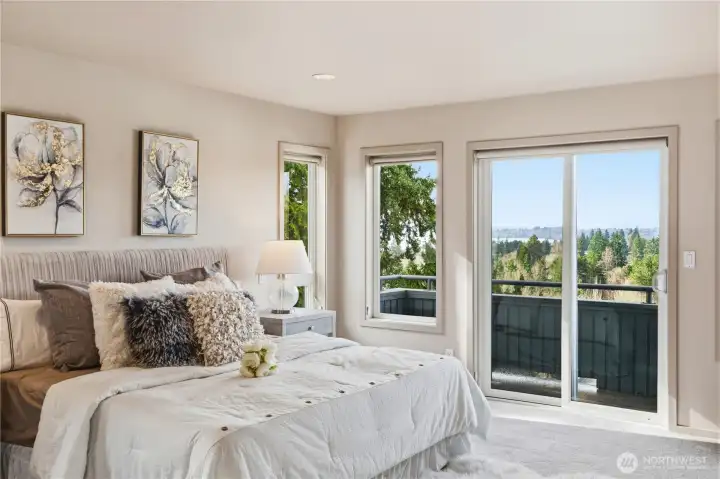 Elevate your lifestyle in this light-filled Kirkland Highlands home, where soaring ceilings and expansive windows frame sweeping views of Lake Washington, the Olympic Mountains, and vibrant sunsets. Backing to the Cross-Kirkland Corridor Trail, the property offers rare privacy with direct access to miles of scenic biking and jogging paths—yet remains just minutes from Google, Kirkland Urban, and downtown Kirkland. The dramatic great room seamlessly connects the chef’s kitchen to an expansive view deck, creating effortless indoor-outdoor living ideal for entertaining or relaxing evenings at home. The luxurious primary suite captures panoramic water vistas and serves as a peaceful retreat. Recent HVAC and smart-home upgrades, an EV-ready garage, and access to top-rated Lake Washington schools complete this exceptional blend of location, comfort, and Northwest lifestyle.