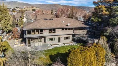 Perched in a private setting far off the street, this beautifully updated 3,198sf residence blends refined comfort with unforgettable scenery, capturing sweeping views of the city, valley, and Cascade Mountains. Designed for both everyday living and elevated entertaining, the home features two spacious primary suites, one on the main level and another below, offering ideal flexibility for guests, multi-generational living, or luxurious retreats. Inside, soaring cathedral ceilings lined in warm wood create a stunning focal point in the living room, while skylights flood the home with natural light. Rich hardwood floors, a wide staircase, upgraded appliances, and a massive kitchen island anchor the thoughtfully updated interior. Automatic exterior blinds on the upper windows provide comfort on sunny days while preserving the panoramic outlook. Outdoors, the grounds feel like a private garden sanctuary. Stone paths wind through a landscape designed to bloom through every season, complemented by a pergola draped in grapevines, two decks for relaxing or entertaining, a dedicated hot-tub setting, and a welcoming water feature at the entrance. Extra driveway parking and a large storage area beneath the deck add convenience to the home’s impressive list of amenities. This is a rare opportunity to own a view property that pairs architectural character, modern upgrades, and peaceful privacy, all in one exceptional setting.