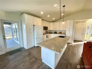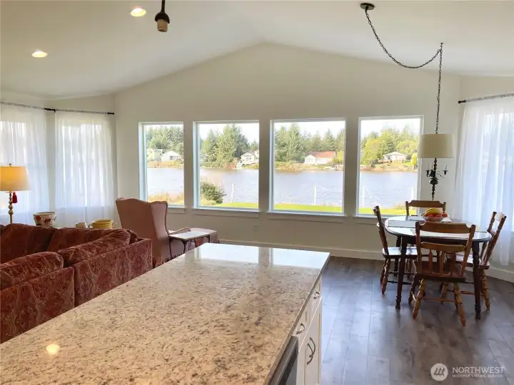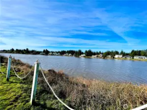 Duck Lake waterfront living in this beautiful 2017 home featuring vaulted ceilings and a wall of windows capturing peaceful lake views and filling the home with natural light. 3 bedrooms, 1 & 3/4 bathrooms and 2 Car Garage. Open-concept kitchen offers granite countertops, abundant cabinetry, and a large island flowing seamlessly into the dining and living areas. A private deck off the kitchen and dining area also adjoins the primary bedroom—perfect for enjoying the lakefront setting. Split-bedroom design places the primary suite on one side of the home and guest bedrooms on the opposite side for added privacy. Fresh interior paint and new carpet in the bedrooms make this home move-in ready. Walking distance to North Bay Park, Ocean Shores Airport, Ocean and the Heart of town.