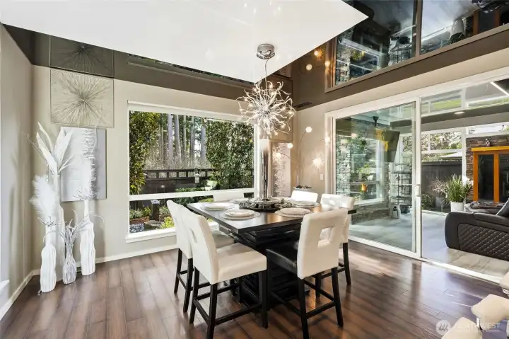 Experience elevated living in this exceptional MainVue resale, showcasing over $250,000 in luxury upgrades and thoughtful design throughout. Ideally located just minutes from Silver Lake and Mill Creek Town Center, this home blends modern sophistication with everyday comfort. Inside, rich hardwood floors and striking high-gloss stretch ceilings create a bright, contemporary atmosphere, enhanced by smart color-changing LED lighting and Wi-Fi-controlled features. The open-concept living space flows seamlessly into a covered sunroom, complete with a custom fireplace and private three-person infrared sauna perfect for relaxing or entertaining year-round. The chef’s kitchen is a true centerpiece, featuring a spacious quartz island, soft-close cabinetry, custom tile accents, stainless steel appliances, and a Samsung smart refrigerator. Retreat to the beautifully upgraded primary suite, where custom finishes and a spa-inspired ensuite provide a peaceful escape. Step outside to your own private oasis, highlighted by Zen-inspired landscaping, an IPE wood deck, ambient outdoor lighting, and a tranquil water feature ideal for hosting or unwinding in style. The neighborhood also offers a private enclosed park and scenic walking trails for added lifestyle appeal. With premium finishes, smart-home convenience, and a prime location, this one-of-a-kind home delivers luxury, functionality, and lasting value. Tour this amazing home today before it goes!