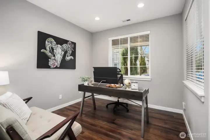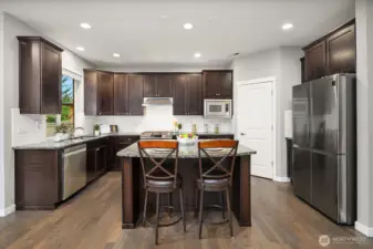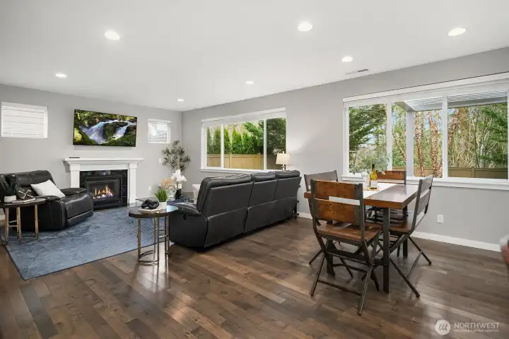 Immaculately maintained in the coveted Snoqualmie Ridge community, this home blends comfort, function, and scenic surroundings. Featuring 4 beds, 2.5 baths, and 2,567 sqft of thoughtfully designed living space. The heart of the home showcases beautiful hardwood floors and a chef’s kitchen with stainless steel appliances and a classic subway tile backsplash. It flows seamlessly into the dining area and spacious family room, creating an ideal layout for everyday living and entertaining, along with a dedicated main level office filled with natural light. Upstairs, the spacious primary suite serves as a private retreat with a luxurious five piece bath and large walk in closet. A generous loft offers versatile bonus space, while the additional bedrooms are well proportioned and thoughtfully situated. The fully fenced backyard backs to a serene greenbelt with mountain and territorial views, complete with low maintenance turf and a covered pergola for year round enjoyment. Just minutes to a 14-acre park with soccer fields and miles of trails, easy I-90 access, and award-winning Snoqualmie Valley schools.
