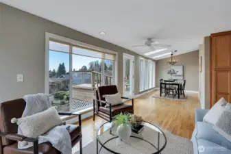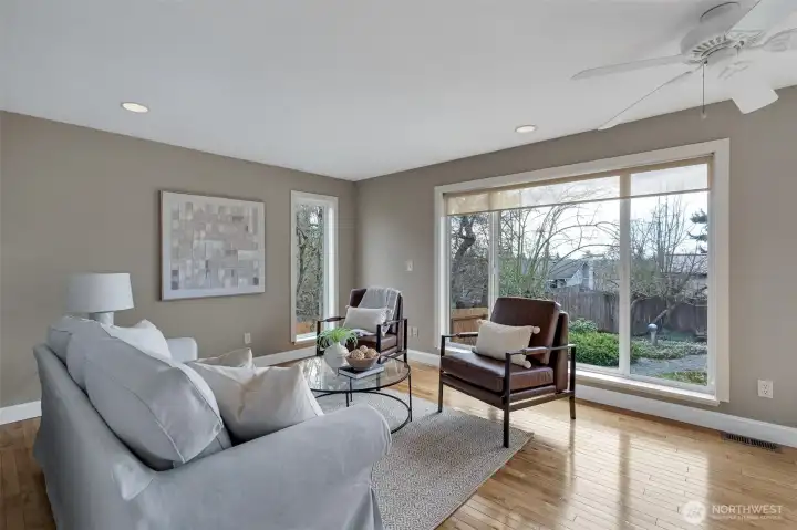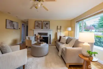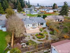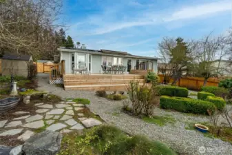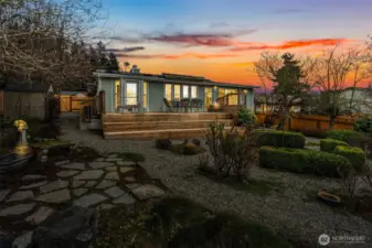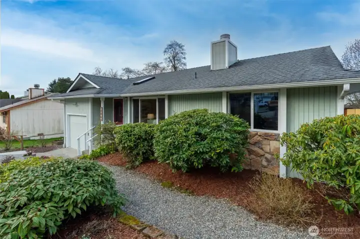Welcome to this beautifully maintained one-story gem in sought-after Browns Point! Lush, mature landscaping and curated garden beds create a storybook setting, with a charming gravel path leading to a warm and inviting entry. A skylight and a cozy fireplace brighten the living room, while hardwood floors flow into the kitchen with oak cabinetry, a full appliance package, and peninsula eating bar. Open dining and family rooms feature floor-to-ceiling windows and connect seamlessly to the oversized deck for effortless indoor/outdoor living. The primary suite offers private deck access, garden windows, a walk-in closet, and attached ¾ bath. A second bedroom and full bath complete the thoughtful layout. Relax in your backyard oasis with the expansive deck, stone patio, mature trees, peek-a-boo Puget Sound view, and storage shed for convenience. Close to schools, parks, trails, beaches, shopping, the Center at Norpoint, restaurants, and falls within Browns Point Improvement Club (BPIC) membership boundaries. This home blends comfort, community, and lifestyle!