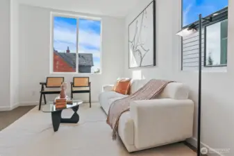 Best price for the best views! Well worth the visit to see the views. Location! Location! Location! Very unique 6 unit project in one of North Seattle's most sought after neighborhoods; Sunset Hill. This unit has West facing windows that provide an abundance of natural light. 1st floor has a bedroom, den/office & a full bath. The 2nd floor has an open floor plan w/ high ceilings & large picture windows. The kitchen is well appointed w/ stainless steel appliances. 3rd floor has a spacious primary bedroom & 3/4 bath. The primary bedroom has views of the Sound/Olympic Mountains. This home has a large rooftop deck w/ stunning views of Sound/Olympics. Fenced yard. 1 assigned off-street parking spot. Near Picolinos, Ray’s, Shilshole, Ballard Locks, Elks, Golden Garden, Sunset Park & much more.