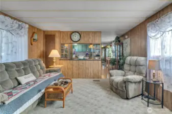 Welcome home to this beautifully cared-for 2-bedroom residence in the highly sought-after Town & Country 55+ Community in Puyallup. Light-filled and tastefully updated, this inviting home offers a spacious kitchen with abundant cabinetry, a cozy dining area, and comfortable living spaces designed for easy, low-maintenance living. Huge carport with extra-large storage space, private yard, and easy ramp access to your unit. Enjoy peaceful mornings on the covered porch overlooking your open and private backyard, which backs to a sprawling green space frequently visited by local wildlife, creating a serene and picturesque setting. Attractive landscaping and true pride of ownership shine throughout the property.Community amenities include a clubhouse, RV parking, well-maintained grounds, and a friendly, professionally managed neighborhood atmosphere. Conveniently located near shopping, dining, and everyday essentials, this affordable, move-in-ready home offers the relaxed lifestyle you’ve been waiting for.Call today—this opportunity won’t last long!