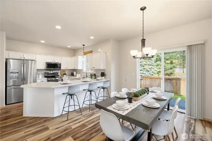 Welcome to Meadows at Rock Creek! This stunning 3-bedroom, 2.5-bath home effortlessly combines modern elegance with cozy comfort. The updated kitchen is a true showstopper, boasting sleek countertops, stylish cabinetry, and stainless-steel appliances—all included! The open-concept design creates a seamless flow between the kitchen, dining, and living areas, making it the perfect space for hosting gatherings or unwinding after a long day. Upstairs, you’ll discover three spacious bedrooms, including a tranquil primary suite with a luxurious 5-piece en suite. A full guest bath and convenient utility room complete the upper level, offering both functionality and style. Step outside to your fully fenced yard with a patio, perfect for outdoor dining, entertaining, or simply enjoying your private outdoor retreat. Located in the highly sought-after Tahoma School District, this home has been pre-inspected for your peace of mind. Don’t miss the chance to make this beautiful property your own!