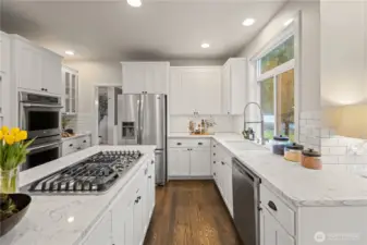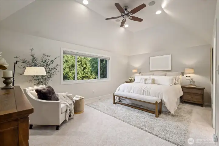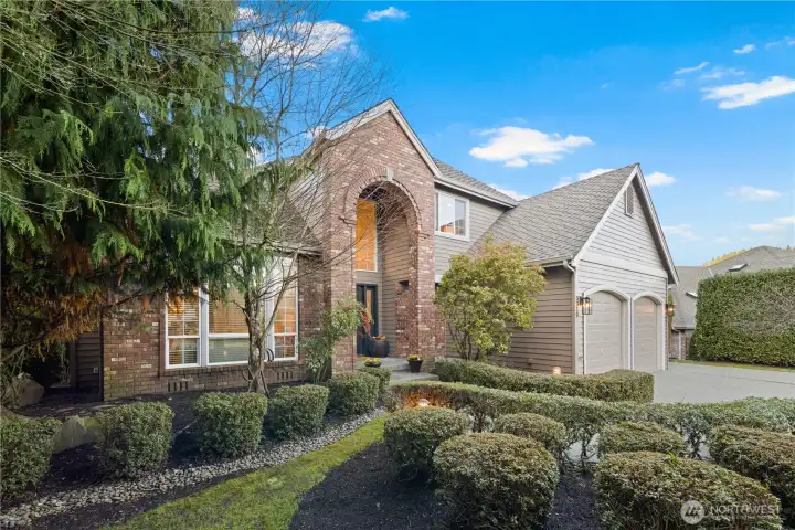 Luxurious Stonegate residence on one of the three largest lots in the community, offering scenic Cougar Mountain views and exceptional privacy. Built by Chaffey Homes in 1997, this 4-bedroom + bonus home features a grand entry with designer lighting, formal living and dining rooms filled with natural light, and an open-concept kitchen with oversized island, custom cabinetry, pantry, breakfast nook, and seamless flow to the family room with gas fireplace and built-ins. Main level also includes a flexible office/bedroom, powder bath, and large laundry room with direct access to an oversized 3-car garage. Spacious primary suite with double doors, vaulted ceilings, jetted soaking tub, walk-in shower, dual vanities, and generous walk-in closet. Upper level bonus room ideal for media or play. Fresh interior paint and new carpet throughout. Outdoor amenities include sport court, private hot tub, walk-out patio, and new 2025 fencing. Tesla charger, A/C, and additional garage storage. Prime location near Newcastle Golf Club, Lake Boren Park, Cougar Mountain trails, dining, and shopping with easy access to Seattle and the airport. Served by top-rated Issaquah School District.