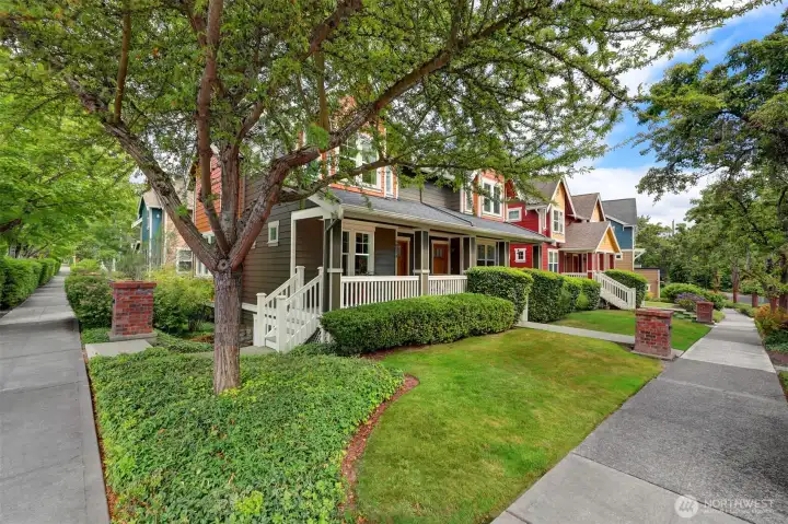 Pristine Rowhome in Windermere impresses with lush, mature landscaping & feel of a detached single-family home. Solid construction, the way they used to build- wide floorplan full of light, lots of classic character & lovely front porch to enjoy the beautiful tree-lined streets. Rich wood floors & perfectly designed kitchen. Triple-pane windows provide peaceful respite while a fireplace sets the mood. 2 spacious en-suite beds & laundry on 2nd floor, 3rd private lower-level bed & .75 bath is ideal for home office or guests. A roomy one-car garage fits all the wheels & PNW toys. Commute is a breeze with the Burke-Gilman Trail & public transit just across the street. U-Village, UW, & Magnuson Park all just a hop, skip or spin away.