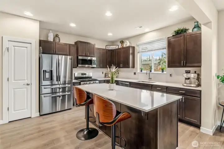 Welcome to the crown jewel of Central Park, North Bothell's most desirable townhome community. Exceptional Two-Story Corner Residence | Built 2019 | Original Owner | This like-new 2019-built corner home showcases impeccable ownership pride and delivers the perfect blend of privacy, light, and turnkey luxury. Set on a premium corner lot, the home is flooded with natural light and complemented by a beautifully positioned south-facing backyard, ideal for all-day sun, outdoor entertaining, and peaceful relaxation. The sun-drenched open great room flows effortlessly into a chef-inspired kitchen with quartz countertops, stainless steel appliances & elegant finishes. Upstairs, a spa-inspired primary suite with a walk-in closet anchors generously sized three additional bedrooms, all in immaculate move-in condition. An extraordinarily rare oversized private yard, one of only a handful in the entire community, delivering outdoor living, gardening space & breathing room that 2-story home buyers rarely find. Tesla EV Charger, all appliances, and Ring Doorbell and Blinds are included. Community amenities include sport court, park & playground. Ultra-Desirable Neighborhood just steps to North Creek High School & Fernwood Elementary in the Northshore School District. Homes in Central Park are highly sought-after with exceptional Walk Score, rapid turnover & consistently strong rental demand. This one won't last long. Welcome HOME!