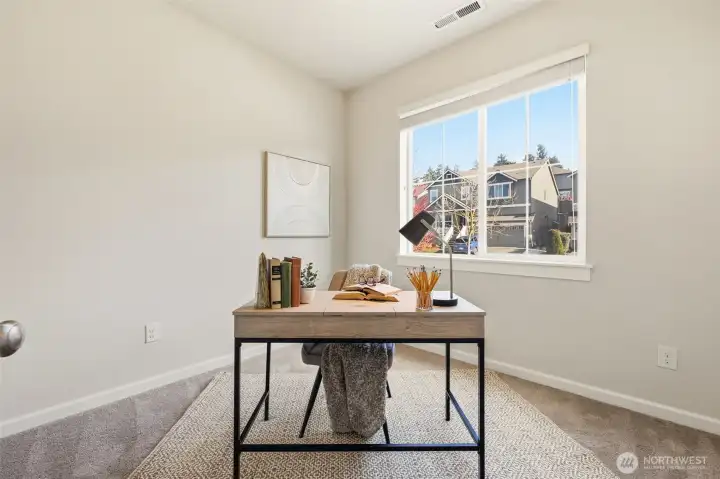 Welcome to this beautifully maintained home in the heart of University Place. The main level offers a smart, flexible layout with a dedicated office plus a private bedroom and full bath—an ideal setup for guests or multi-generational living. Natural light fills the open kitchen and living area, where seamless indoor-outdoor flow to the deck creates an inviting space for everyday living and entertaining.Upstairs, the spacious primary suite features a 5-piece bath and walk-in closet, complemented by two additional bedrooms and a generous bonus room perfect for work, play, or relaxation. Enjoy cool summers with AC and cozy evenings by the gas fireplace as the seasons change.Set on a quiet street just steps from two neighborhood parks and minutes to Chambers Bay Golf, shopping, dining, and major commuter routes—this home delivers comfort, convenience, and an unbeatable UP lifestyle.