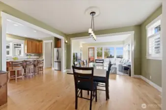Welcome to your gorgeous new home with sweeping water views in President Point, Kingston. This 2,980 sq. ft. Craftsman-style residence greets you with a spacious rocking-chair front porch and an inviting open living area with a cozy fireplace. The layout flows seamlessly into a generous dining area, den, and a light-filled kitchen featuring new appliances, quartz countertops, cherry cabinets, hardwood floors, plantation shutters and updated sink and faucets. The home offers three generous bedrooms, including a large primary suite with a 5-piece en-suite bath, and new quartz countertops. A spacious bonus room and a total of 2.75 bathrooms provide plenty of flexibility for work, guests, or hobbies. The oversized two-car garage includes abundant storage. Set on a beautifully landscaped lot just under 17,000 sq. ft., the property sits in a neighborhood that enjoys 500 feet of shared private beach, only a short walk from the home. From both the interior and the back entertainment deck, you’ll take in expansive views of Puget Sound, Mt. Baker, Kingston, and the ferries. With only a 7-minute drive to the Kingston Ferry and the Fast Ferry to downtown Seattle, this location is truly a commuter’s dream.