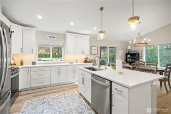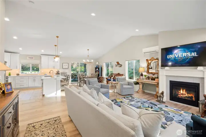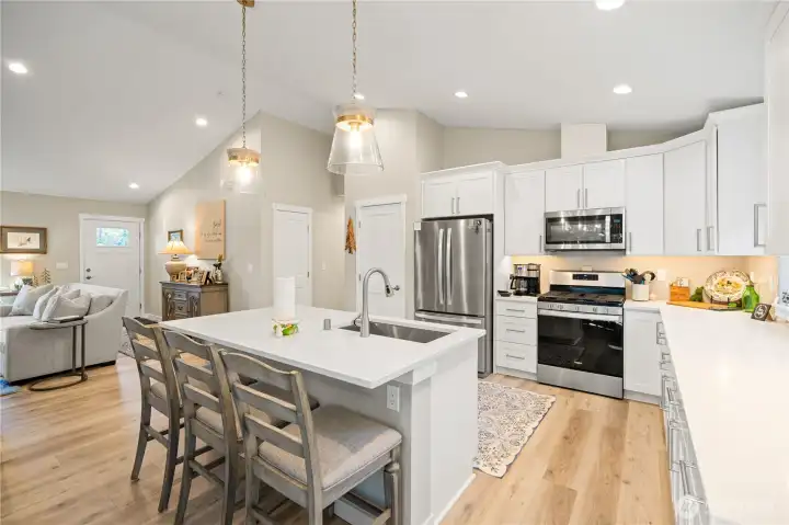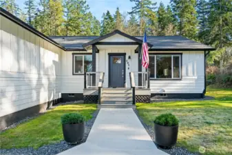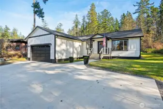 Stunning newer home offers modern comfort in one of San Juan Island’s desirable locations on scenic Westcott Bay. Built in December 2023, this 3-bedroom, 2-bath residence is just minutes from Roche Harbor Resort’s dining, marina, and amenities. Step inside to vaulted ceilings, an airy open floor plan, and abundant natural light. The inviting living area features a cozy gas fireplace, ideal for cool winter evenings. The spacious kitchen flows seamlessly into the main living and dining areas, making entertaining effortless. Contemporary finishes shine throughout, including sleek quartz countertops, beautiful plank flooring, and thoughtfully designed modern interiors that feel both elegant and welcoming. The primary bedroom provides a peaceful retreat with a vaulted ceiling and private 3/4 bath. The guest bath also features double sinks for added comfort and functionality. Enjoy efficient heating and cooling with a mini-split system, plus the peace of mind of a whole-house generator for dependable backup power year-round. A two-car garage offers convenience and ample storage. Outside, relax on the partially covered back deck crafted with durable Trex decking, overlooking a sunny yard—perfect for morning coffee, summer gatherings, or quiet afternoons surrounded by nature. With community beach access and a short stroll to Westcott Bay Oyster Farm, this nearly new Westcott Bay home delivers modern island living in a great location.