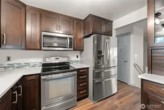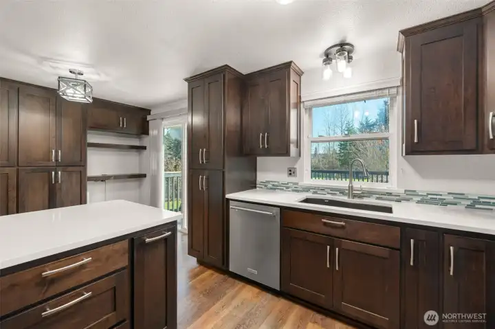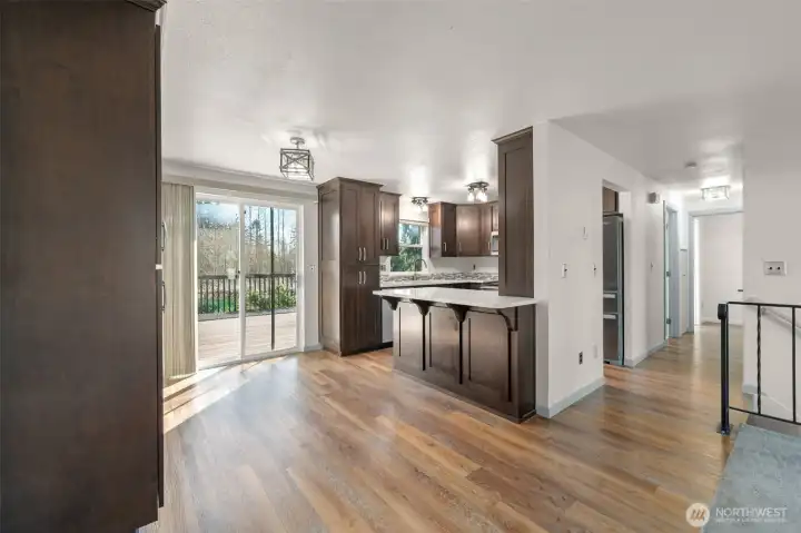 Well-loved and beautifully renovated throughout the years home offers perfect blend of modern updates and private living! Light-filled main level boasts cozy living and dining rooms with wood burning fireplace, fully remodeled Gourmet kitchen with abundance of high-quality cabinets, stainless steel appliances, quartz counters, full backsplash, and large island overlooking entertainment size composite Trex deck, and a lush fully fenced backyard. Primary bedroom with the sliding door to the Trex deck and 2 additional bedrooms share renovated full bathroom. Lower level offers spacious recreational multi-purpose room with the slider door to covered Trex deck, remodeled 3/4-bathroom, laundry, and a two-car garage. Luxury vinyl plank floors almost throughout the main floor, newer quality carpet on the lower level. Numerous major upgrades. Just installed brand new electrical panel. Tranquil and peaceful full fenced backyard with plenty of room for the garden is a perfect place to relax, entertain, and reflect. The house is in Quilceda Meadows HOA, walking distance to park with playground and other amenities; shopping, transportation, I5. Welcome home!!!