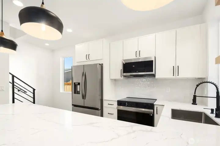 Great location! Best price for the area for this very unique 6 unit project in one of North Seattle's most sought after neighborhoods; Sunset Hill. 1st floor has high ceilings, well appointed kitchen with stainless steel appliances, dining area, living room and a mud room off the garage and home's entrance. The 2nd floor has an en suite primary bedroom, 2 additional bedrooms with vaulted ceilings and a 2nd full bath. Fenced yard. Private garage with a charging for electric cars. Peekaboo views from primary bedroom of Sound and Olympic Mountains. Near Picolinos, Ray’s, Shilshole, Ballard Locks, Elks, Golden Garden, Sunset Park & much more.