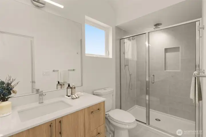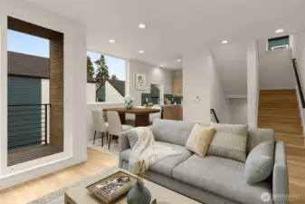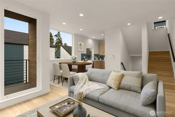 Built by Blackwood Homes, this modern three-level home blends functional design with everyday livability. The entry level features a bedroom and full bath, creating an ideal setup for guests, a home office, or multi-generational living. The second level showcases a light-filled open-concept layout with a spacious kitchen, dining area, and comfortable living room that flows seamlessly to a private deck; perfect for morning coffee or evening unwinding. The kitchen offers generous counter space and an ideal layout for entertaining. On the third level, retreat to the private primary suite complete with a walk-in closet and ensuite bath. A flex space on this level provides additional versatility; ideal for a home office, workout area, or reading nook. Thoughtful design, modern finishes, and a highly functional floor plan make this home live larger than expected. EV-wired dedicated parking space. Conveniently located directly across from Brighton Playfield and near Genesee Playfield, neighborhood cafes and restaurants, the Columbia City Farmers Market, light rail access, and quick access to I-5 and I-90. Offering the perfect blend of comfort and city accessibility.