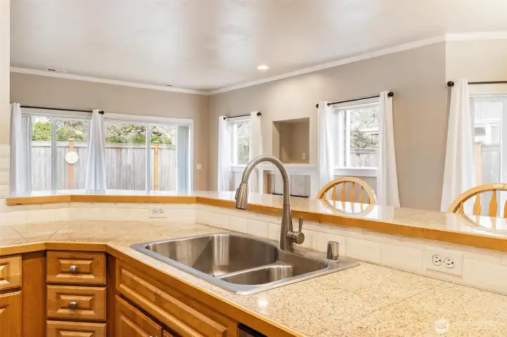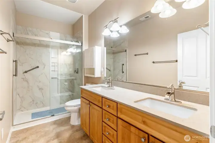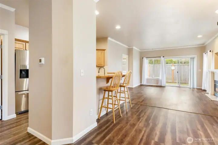 Welcome to the sought-after gated community of Hampton East, offering easy, low-maintenance living in an unbeatable location. This beautifully designed one-level home features three bedrooms, open-concept living, and a cozy gas fireplace that creates a warm and inviting atmosphere. The spacious primary suite offers a private ensuite bath with quartz countertops and a generous shower. Enjoy peaceful mornings or relaxing evenings on the serene back patio, all within a quiet, well-maintained community near the community center and ample visitor parking. An attached two-car garage provides abundant parking and storage. Ideally located just minutes from dining, shopping, Target, Home Depot, East Hill amenities, Lake Meridian, Kent-Meridian High School, and with easy access to HWY 167, this home truly offers comfort, convenience, and effortless living in one exceptional setting.