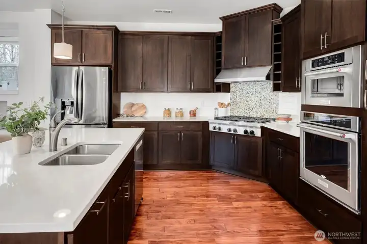 Light filled interiors & a spacious, thoughtfully designed floorplan welcome you to this beautifully maintained one owner home in a premiere Sammamish location. Fresh interior paint & brand new carpet highlight the exceptional pride of ownership throughout, while wood floors, elegant finishes, & a welcoming gas fireplace surrounded by thoughtful built-ins anchor the main living space. The open kitchen flows seamlessly into the living & dining areas, offering an easy, functional layout well suited for both everyday living & entertaining. Upstairs, the primary suite features a luxurious en suite bath & an oversized walk-in closet with custom built-ins, complemented by two additional bedrooms & a flexible bonus sitting or workspace area. The lower level adds over 850 sqft of fully finished living space with direct access to a walkout yard, providing excellent flexibility for media, recreation, fitness, or more. Backing to protected green space, the home enjoys rare privacy & serene natural views that will remain preserved. Located in the Woodhaven community by Toll Brothers, the home is set within a highly walkable neighborhood, served by world class schools - Clara Barton, Inglewood Middle, Eastlake High, & is conveniently close to Sammamish Highlands shopping, dining, & everyday amenities, while still being just minutes to DT Redmond, light rail transit, & 520. A rare opportunity to enjoy space, comfort, & lifestyle in one of Sammamish’s most desirable communities.