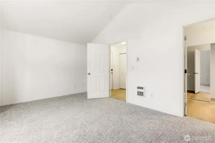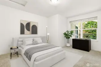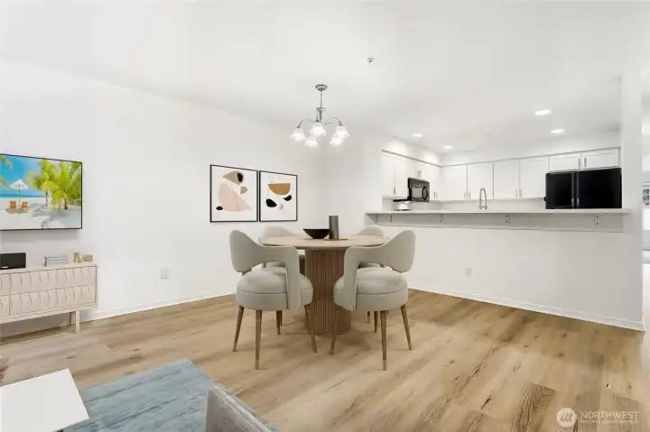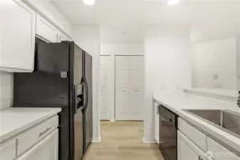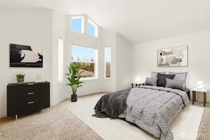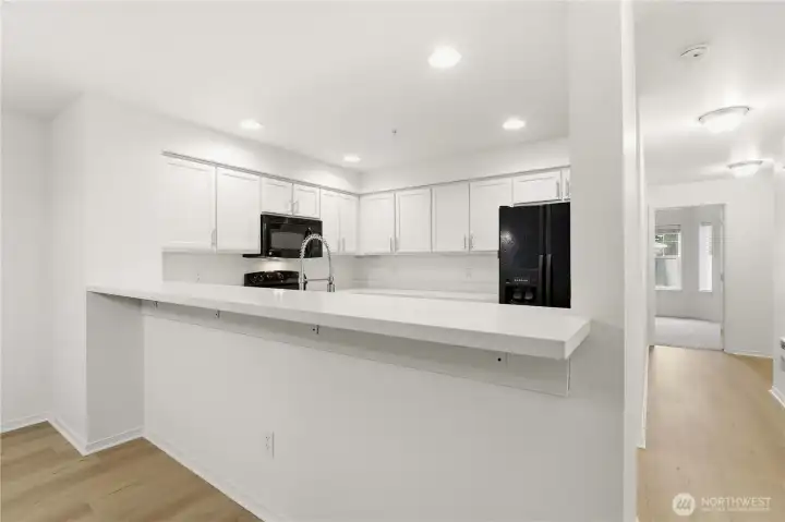 The Perfect Blend of Style & Space: Updated End Unit with 3 Parking Spots! Experience your own slice of top-floor serenity at Shoreside Condominiums! This beautifully updated end unit near Silver Lake offers the perfect blend of modern style and effortless living. Step inside to find fresh paint, new luxury vinyl plank flooring, and plush new carpet throughout. The bright kitchen shines with quartz countertops, a stainless steel sink, and sleek black appliances, while the living room invites you to cozy up by the gas fireplace or step through the sliders onto your large private deck. The primary suite feels like a true retreat with its soaring vaulted ceilings, private 3/4 bath, and spacious closet. You'll love the convenience of the main bath and the included full-size washer and dryer. This home is as practical as it is pretty, featuring 2” blinds, three dedicated parking spaces (including one tandem), and a low-maintenance building with vinyl siding and a roof replaced in 2020. With water and sewer included in the HOA dues and easy access to I-5 and Boeing, this turn-key gem is ready for its next chapter.