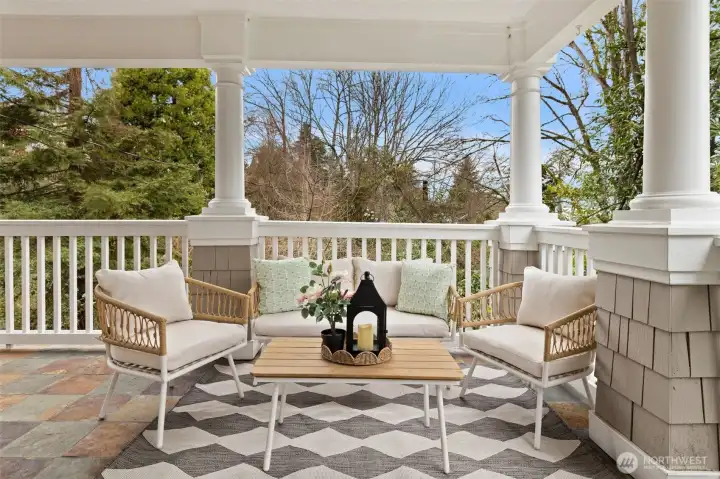 Tucked in the heart of Madison Valley, this custom-built Victorian blends timeless charm with modern ease. Elevated above the street for added privacy, solid oak hardwoods, tall ceilings, fresh paint, and walls of windows flood the home with natural light creating a warm, refined feel. The chef’s kitchen showcases a Viking range and wine fridge, paired with charming breakfast nook illuminated by overhead skylights. Just beyond, the expansive deck extends the living space outdoors for al fresco dining. Escape to the top-floor primary suite, where French doors open to private balcony and sweeping vistas unfold beyond. Complete with spacious walk-in closet and spa-inspired ensuite featuring soaking tub and dual shower. Evenings begin on the front porch and linger around the fire pit, while two dedicated parking spaces and effortless access to light rail, Arboretum, neighborhood parks, and downtown make daily life beautifully convenient.