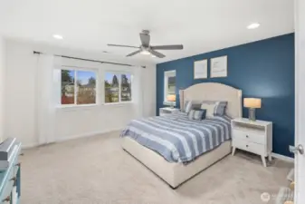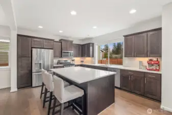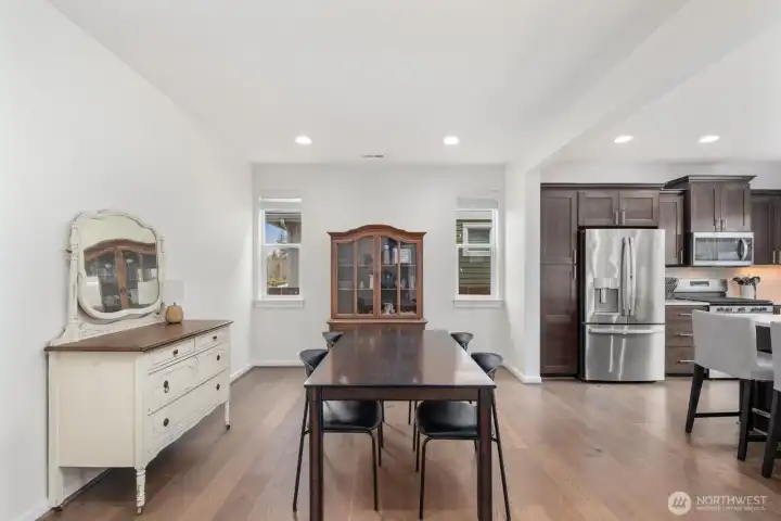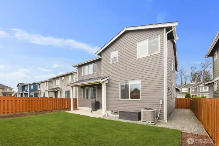 Built in 2019 and still like new, this 2,639 sq. ft. home offers 4 bedrooms and 2.5 baths in a quiet cul-de-sac within a beautifully maintained community, featuring a private neighborhood park at the end of the street. West-facing and backing to a serene greenbelt, the home enjoys abundant natural light and a fully fenced private yard. The open-concept main level showcases hardwood floors, a spacious kitchen with stainless steel appliances, large island with a formal dining area, gas fireplace in the living room, custom blinds throughout, Solar Panel, Tankless water heat, mudroom built-ins, EV charger in garage, new W/D and dishwasher, and A/C—ideal for both everyday living and entertaining. Upstairs features an inviting loft, comfortable secondary bedrooms and bathroom, and a spacious primary suite with a 5-piece en-suite bath and walk-in closet. Conveniently located minutes to the Star Lake Light Rail station with easy access to Sea-Tac Airport and downtown Seattle, and close to Redondo Beach, dining, and everyday amenities. A rare blend of comfort, privacy, and convenience—this home is a must-see.