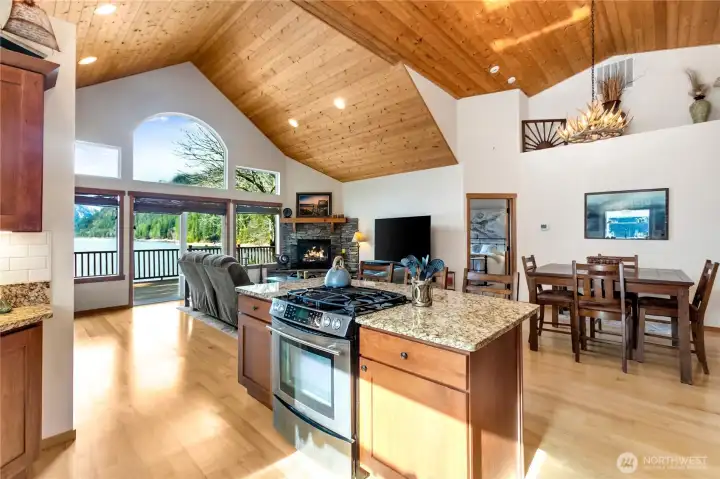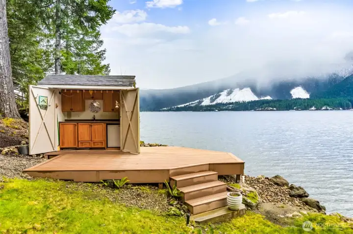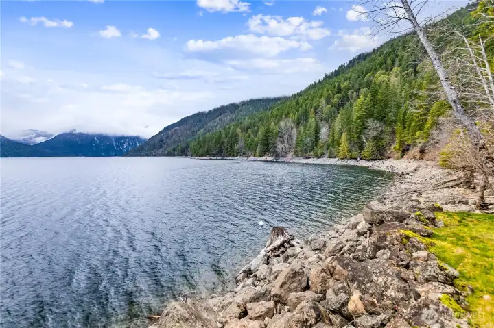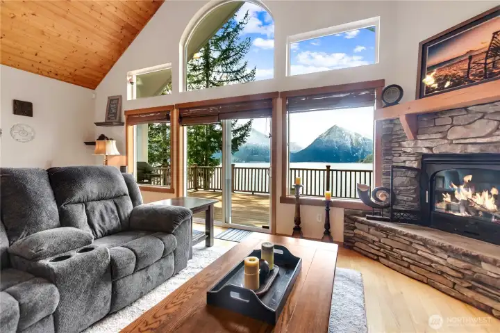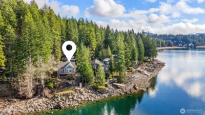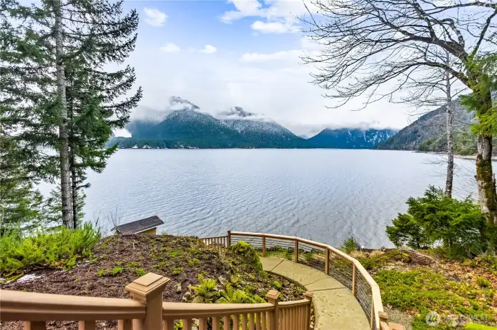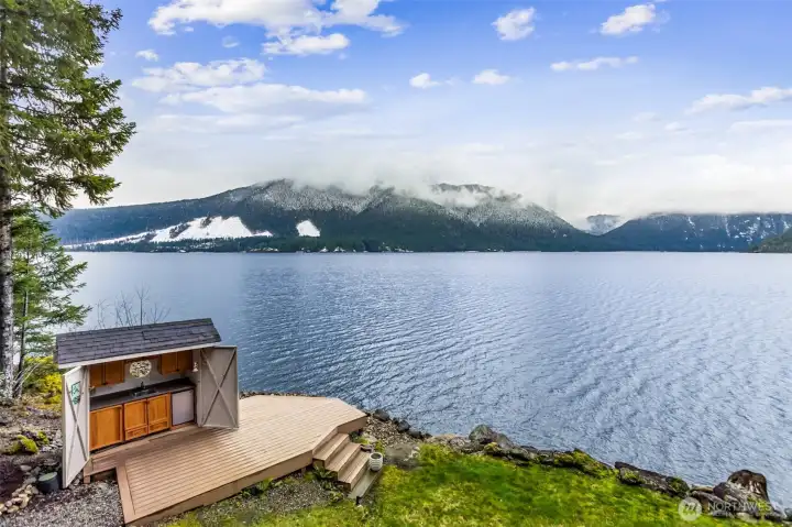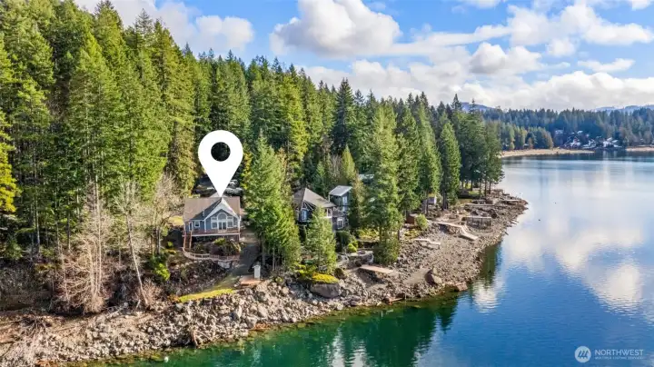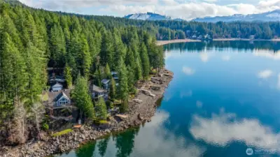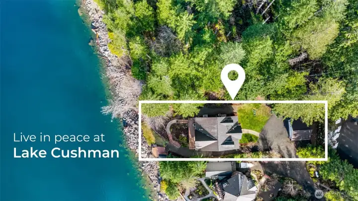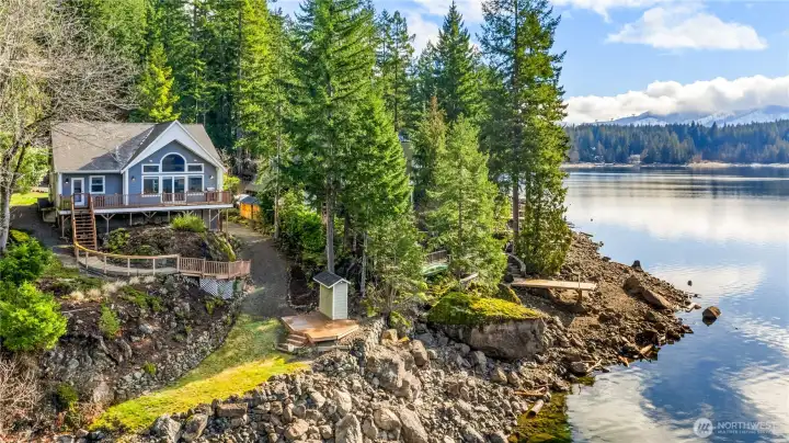 Enjoy exceptional waterfront living in the sought after Mt. Rose Village community at Lake Cushman. This beautifully crafted lakefront home offers sweeping views of the water and surrounding mountains, creating the perfect setting for both relaxing and entertaining. Vaulted wood ceilings and expansive windows fill the home with natural light, while the spacious kitchen features quality finishes, ample cabinetry, and generous prep space. The primary suite offers private deck access and a spa inspired bath, creating a true retreat. The lower level provides flexible living areas ideal for guests, office space, or additional sleeping quarters. 2 bedroom that lives like a 4 bedroom. Outside a large deck overlooking the shoreline, complete with direct lake access and a private buoy. An approved shoreline permit adds long term value and flexibility, will need transferred. Whether you are seeking a full time residence, vacation getaway, or rental opportunity, this Lake Cushman property delivers for every lifestyle.