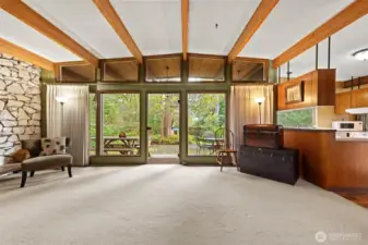Welcome to 1007 Panorama Ct, tucked on a quiet cul-de-sac in the heart of Fircrest. Set on a desirable corner lot, this lovingly maintained 1965 mid-century rambler blends original character with thoughtful updates. Inside, vaulted ceilings, exposed beams, and a striking gas fireplace anchor the main living space, while skylights and expansive windows provide abundant natural light throughout. A standout feature is the glass atrium with hose hookup—ideal for an indoor garden, plant sanctuary, or bird haven that brings the outdoors in year-round. Original wood cabinetry and paneling add timeless mid-century warmth and enhance the home’s architectural charm. The home offers three spacious bedrooms with large closets and three bathrooms, including a full bath off the primary bedroom. Recent updates include a new HVAC system installed last summer and newer Andersen windows, offering comfort and efficiency. Outside, enjoy a fully fenced backyard oasis featuring a koi pond, established gardens, fruit trees including pear, apple, and plum, plus growing herbs—perfect for relaxing or entertaining. The two-car garage includes extensive built-in storage and a 16-foot swim spa with its own ventilation system. A truly special home in a sought-after Fircrest location—don’t miss the opportunity to see it in person!