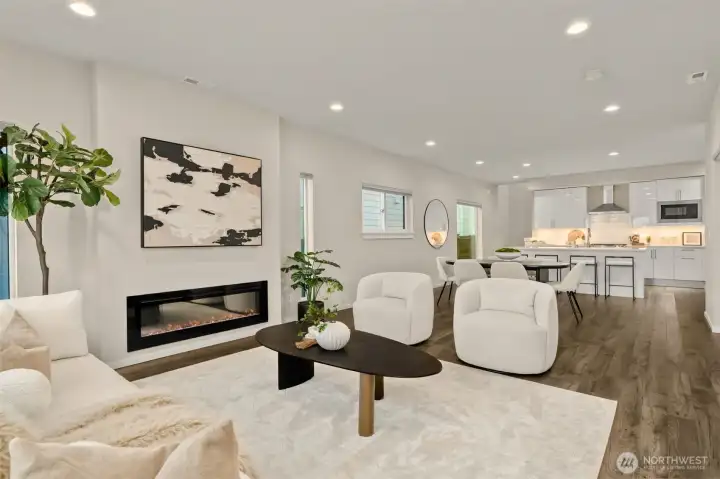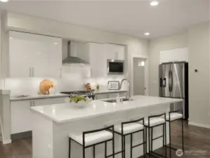 Tucked away on a quiet street in the Ten Trails community, this thoughtfully designed Ichijo home delivers modern comfort, smart functionality, and room to truly settle in. The light-filled main level features an open-concept layout anchored by a welcoming great room with gas fireplace and a contemporary kitchen that flows seamlessly into the living and dining spaces, perfect for everyday living and effortless entertaining. Quartz countertops, a gas range, soft-close cabinetry with pull-down shelving, built-in organizers, under-cabinet lighting, and a walk-in pantry bring both style and efficiency to the heart of the home. Upstairs, the primary suite offers a generous walk-in closet and spa-like five-piece ensuite. Well-sized secondary bedrooms and a versatile loft provide flexibility for a home office, movie room, or workout space. Outside, enjoy a covered patio and partially fenced yard with low-maintenance landscaping, ideal for relaxed evenings or weekend hosting. All of this is set within a vibrant, well-connected community featuring parks, playgrounds, trails, and easy access to Black Diamond amenities and commuter routes.
