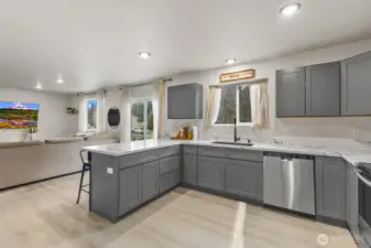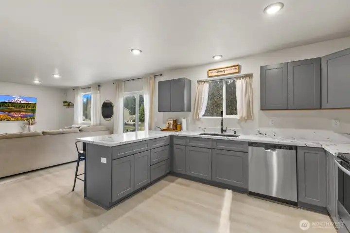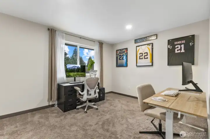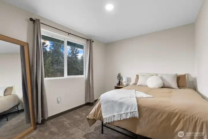 Welcome home to this like-new 2-story stunner featuring 2 bedrooms plus a spacious true third room with a closet, perfect for a bedroom, guest suite, or flexible living space. You’ll also enjoy an additional den/office, ideal for remote work, a playroom, or extra storage. With 1,617 sq ft of thoughtfully designed living space, the main level showcases an open-concept great room filled with natural light, a mini split for relaxed comfort, complemented by durable laminate flooring that seamless flow into the dining area and kitchen. The kitchen is designed to impress with slab granite countertops, stainless steel appliances, a breakfast bar, and a generous walk-in pantry that is ideal for both entertaining and everyday living. Upstairs, the primary suite offers a true retreat with a large walk-in closet and private ensuite bath. Also, the convenient upstairs utility room adds everyday ease. Step outside to a stunning partially fenced almost ¼-acre lot backing to a peaceful greenbelt with patios in both the front and backyard, creating multiple spaces to relax and unwind as this property offers rare privacy. Expand your imagination with a newer 3-year-old septic system sized for more bedrooms. Just minutes to parks, shopping, Fredrickson amenities, and easy freeway access, this home delivers comfort, functionality, and lifestyle all in one. Come experience the perfect blend of modern living and serene outdoor space. Home comes with a 1-Year Warranty!