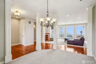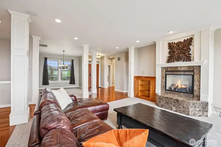 Experience breathtaking river, territorial, and city views from nearly every room of this exceptional home. The expansive composite deck offers a front-row seat to uninterrupted panoramas, creating an ideal setting for relaxation or entertaining. Located in an upscale gated community known for its spacious lots, generous setbacks, and meticulous pride of ownership, this property blends privacy with elegance. The open floor plan features hardwood floors, a welcoming living area with a gas fireplace, a main-level primary suite, a formal dining room, and an eat-in kitchen. A flexible office space doubles as a fourth bedroom, and the oversized laundry room provides outstanding storage. The daylight basement offers even more versatility, with a large bonus area currently enjoyed as a billiards room, two additional bedrooms, and a full bathroom—perfect for guests or multi-generational living. This exclusive neighborhood of just 35 homes delivers serenity, space, and sweeping views that are truly unmatched.