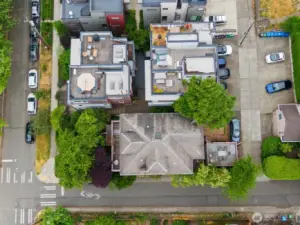 Grand Craftsman duplex in the heart of Capitol Hill offering exceptional flexibility: an expansive primary residence paired with an income-producing second unit. The primary residence spans three stories with six bedrooms and downtown views, providing substantial scale and livability for an owner-occupant or long-term tenant. The second unit is a separate, fully equipped studio, offering privacy and in-place income. Fix and flip, buy and hold as a full rental investment, live in one unit as an owner-occupant with supplemental rental income, or occupy the entire property to create space for guests or intergenerational living. The primary residence is currently tenant-occupied on a month-to-month basis, creating near-term flexibility for a qualified buyer. Extensive unfinished basement square footage presents an opportunity to expand rentable area or enhance owner use, subject to the buyer’s plans. Situated on a 4,311 SF corner lot with alley access and off-street parking for two vehicles, the property is zoned LR3 and includes near shovel-ready plans by Hybrid Architecture for five duplex units (four townhomes and one single-family residence), providing a clear redevelopment alternative for a developer. Property tours are available to qualified buyers by appointment, with interior access coordinated to respect existing tenancy. A high-caliber Capitol Hill property for buyers seeking immediate livability, stable income, and long-term flexibility.