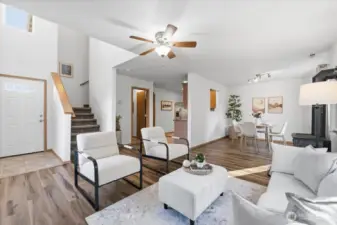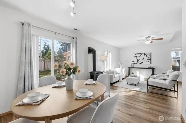 This beautifully maintained 3-bedroom, 2.5-bath home blends comfort, smart updates. Fresh laminate flooring flows throughout. A cozy gas stove located in the heart of the living room. Major upgrades are already done for you, including a new roof with transferable warranty and an HVAC air scrubber system for cleaner indoor air. Upstairs, the spacious primary suite offers a walk-in closet and attached on-suite bath. Convenience of upstairs laundry and the generous storage space. All appliances are included, making this truly move-in ready. Step outside to your oversized backyard, a rare find in this neighborhood, complete with a charming covered pergola perfect for entertaining, relaxing evenings, or weekend gatherings. Across the street is a large field and sport court for your enjoyment. Extra 3 car parking out front adds flexibility for guests or additional vehicles. Located moments from Lake Sawyer and direct access to the lake for recreation and play. Thoughtfully updated, move-in ready, and positioned in a sought-after community—this home is the lifestyle upgrade you’ve been waiting for.