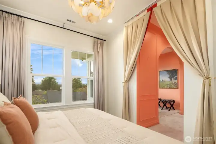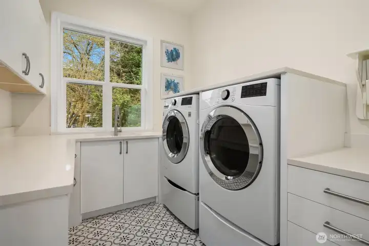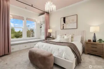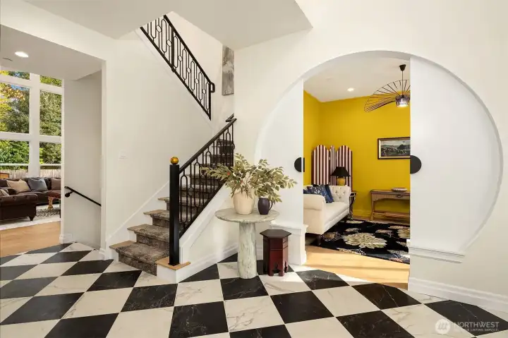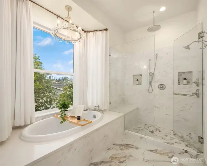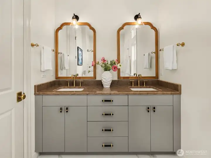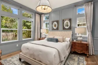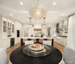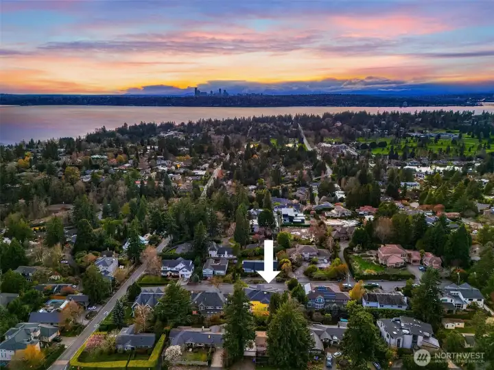 Nestled in the coveted 98004 zip code and zoned for highly sought-after Medina Elementary, this exceptional custom home offers a rare blend of privacy, refined elegance, and modern functionality on a quiet dead-end street. Designed with timeless architectural character and rich detailing throughout, the home welcomes you with a grand two-story foyer and flows seamlessly into expansive, light-filled living spaces. The chef’s kitchen is a true showpiece, featuring an oversized island, premium quartz surfaces, and a suite of top-of-the-line appliances including a 48” Italian range, Liebherr fridge, Miele built-ins, and Fisher&Paykel dishwasher, complemented by a fully equipped secondary kitchen ideal for entertaining. The open-concept design connects effortlessly to a dramatic double-height living room with custom fireplace and integrated home theater. Enjoy flexible living with a main-level guest suite and multiple ensuite bedrooms, highlighted by a luxurious primary retreat with sitting area, private balcony, partial lake views, dual walk-in closets, and spa-inspired bath. Outdoor spaces are thoughtfully curated with a covered patio, fire pit, garden beds, and mature landscaping including fruit trees, all designed for beauty and ease of maintenance. Additional features include a 3-car garage with EV charging, enhanced electrical capacity, smart security system, and versatile lower-level spaces. A truly distinctive offering combining luxury, comfort, and an unbeatable location.