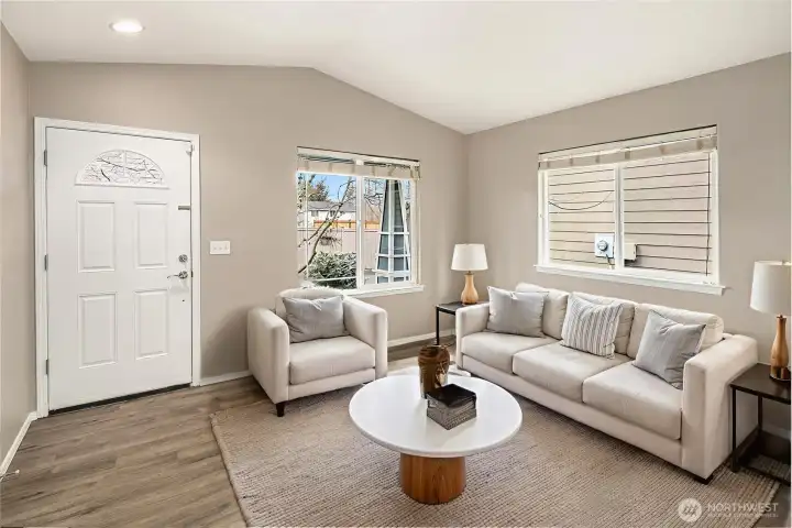Tucked away on a private drive, this beautifully maintained home lives like a single-family residence while offering the ease of a well-designed community. Inside, a formal living room pairs with a spacious great room anchored by a cozy gas fireplace. The kitchen features freshly painted cabinetry, granite counters, and Samsung appliances. Upstairs, the generous primary suite includes a walk-in closet and a stunningly updated bath with a frameless glass shower. A versatile sky lit loft provides the perfect flex space for work or relaxation, complemented by an upstairs laundry with new washer and dryer. Recent upgrades include newer carpet, LVP flooring, freshly painted trim and interior doors, and exterior paint completed within the last four months. Comfort comes easy with A/C, a two-year-old furnace, newer water heater, and Leaf Guard gutters. Outside, enjoy a fully fenced yard, expansive deck, and low-maintenance landscaping ideal for outdoor living. A nearby park and play area enhance the neighborhood charm. Minutes to amenities. Welcome home.